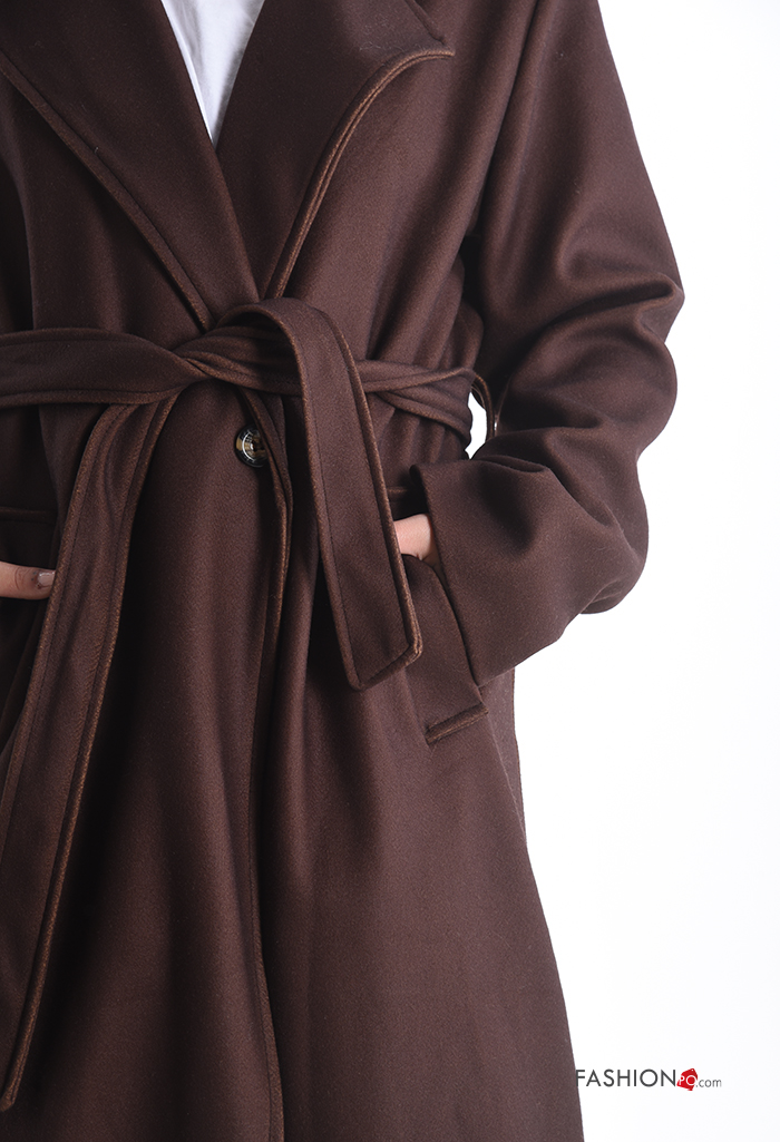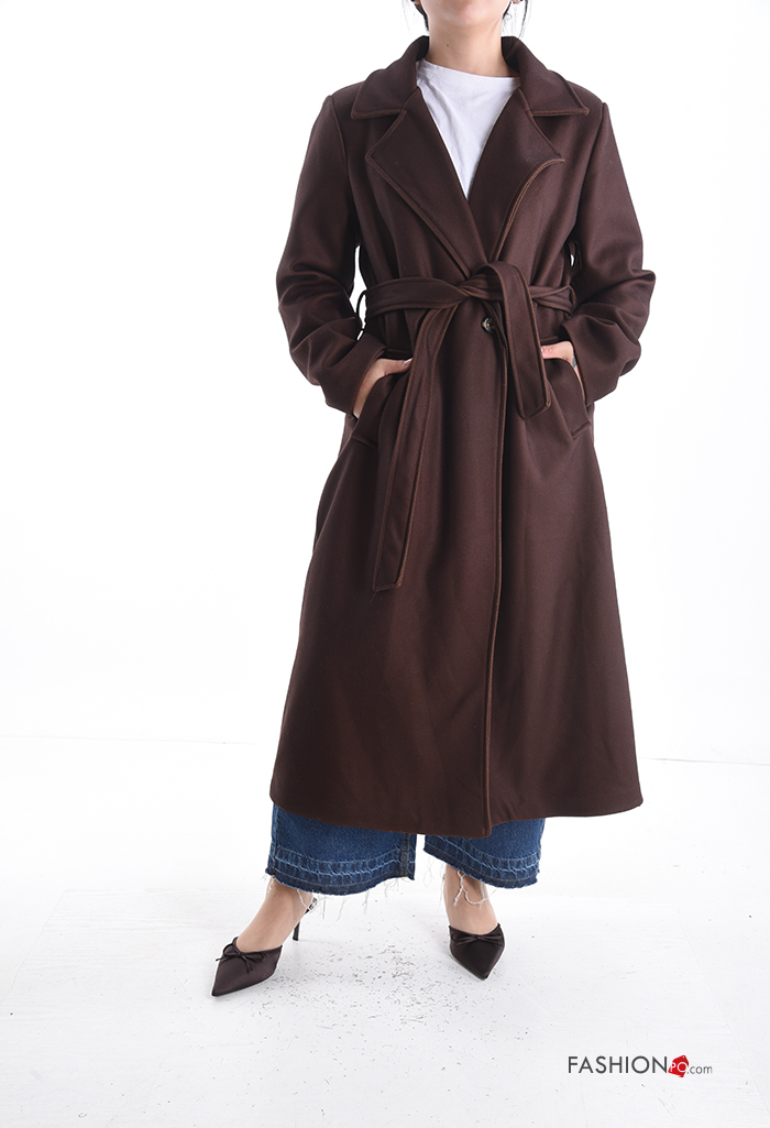 Manteau longue à boutons avec ceinture avec doublure avec poches