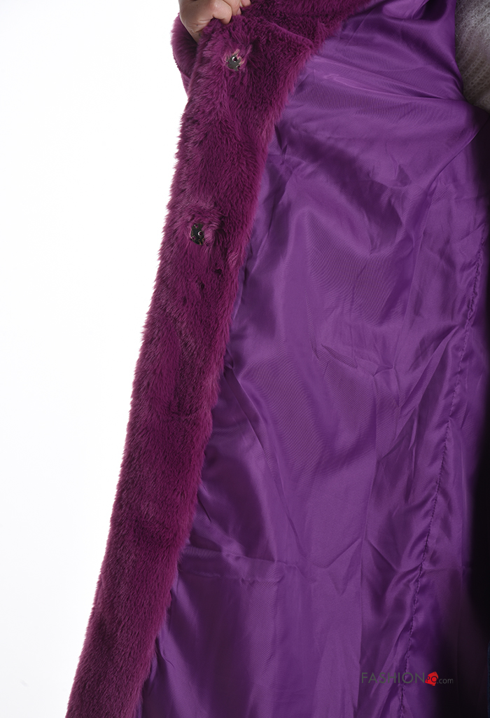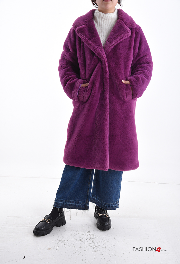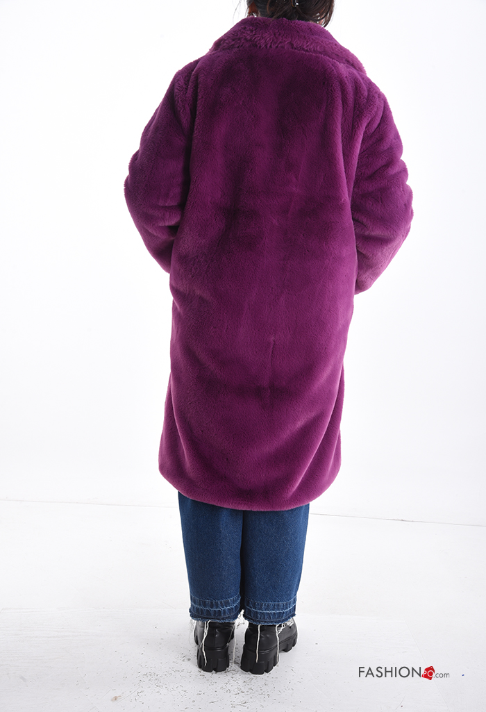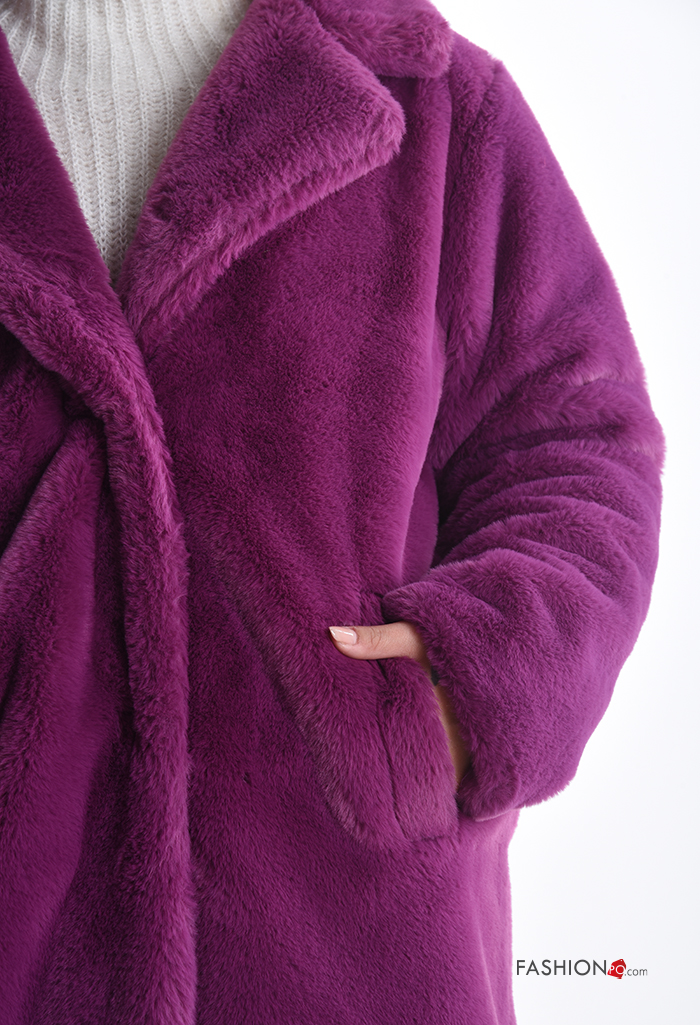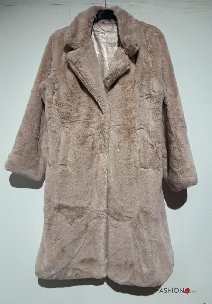 Manteau fourrure synthétique manches longues avec poches avec doublure à boutons