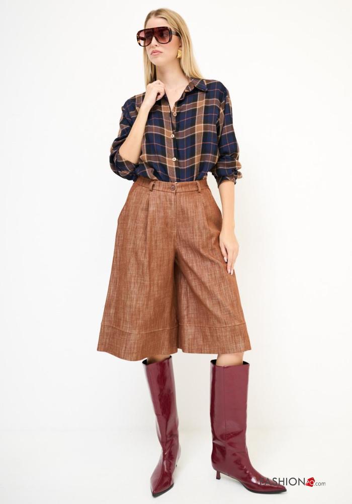 Bermuda en Coton à genoux avec poches à boutons avec élastique avec fermeture éclair