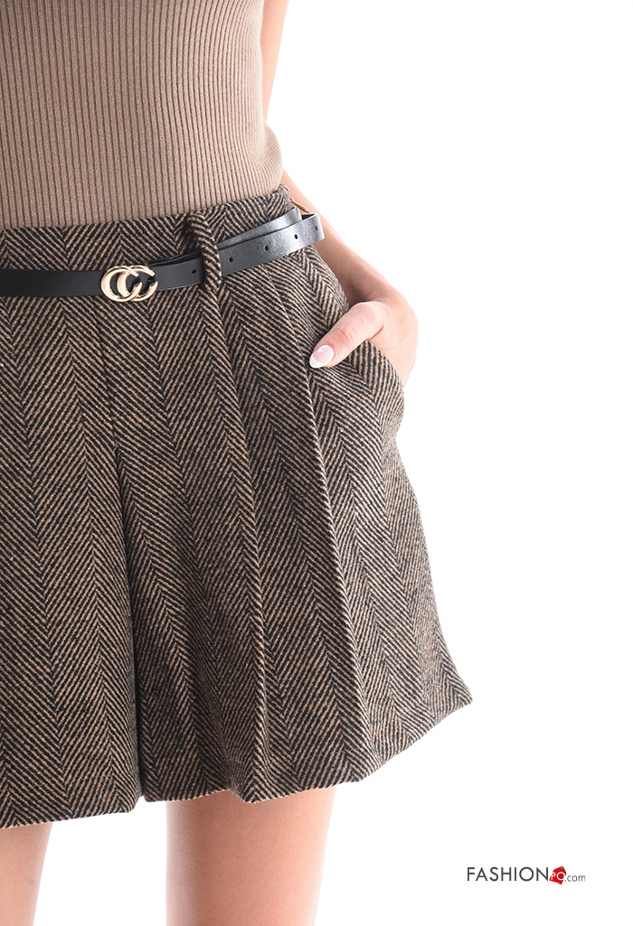 Shorts plissé avec poches avec élastique avec ceinture