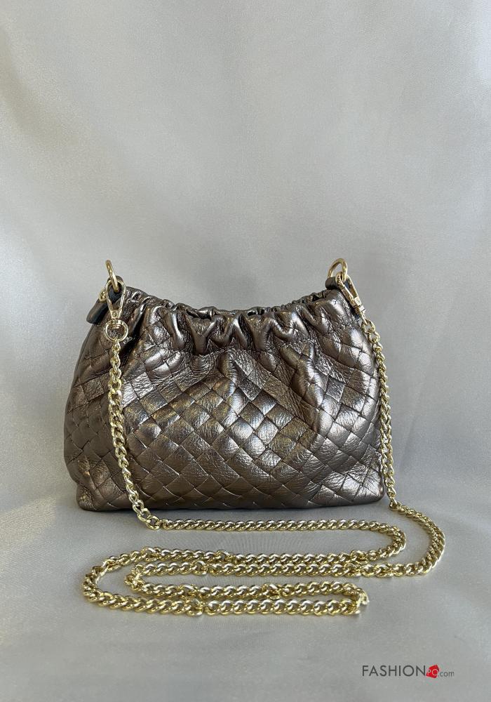 Borsa a spalla in Vera pelle con tracolla con catena