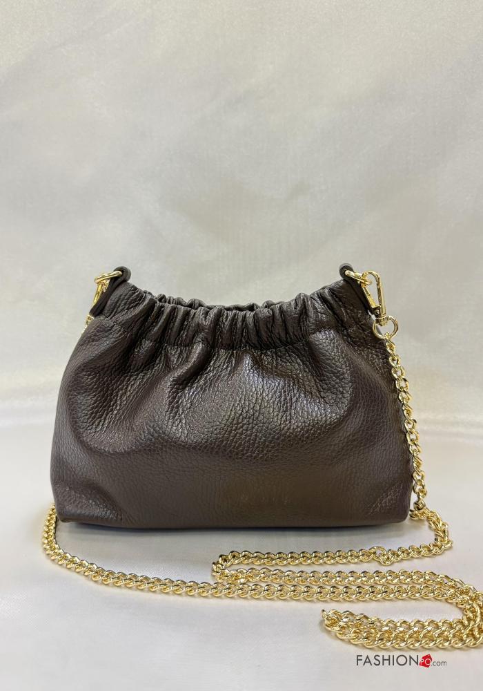 Borsa a spalla in Vera pelle con tracolla con catena