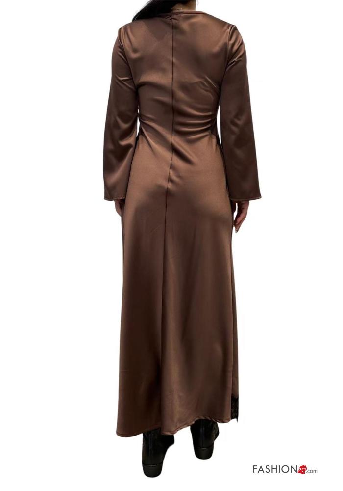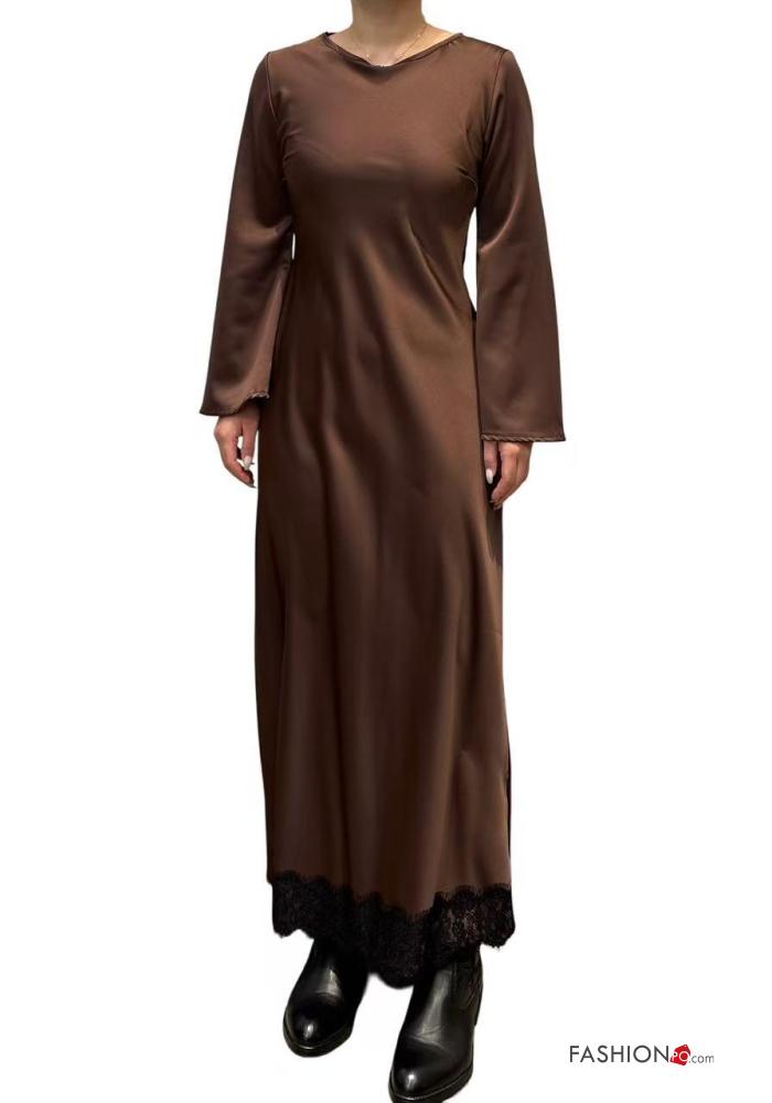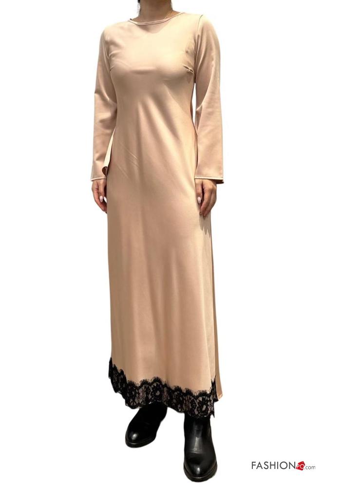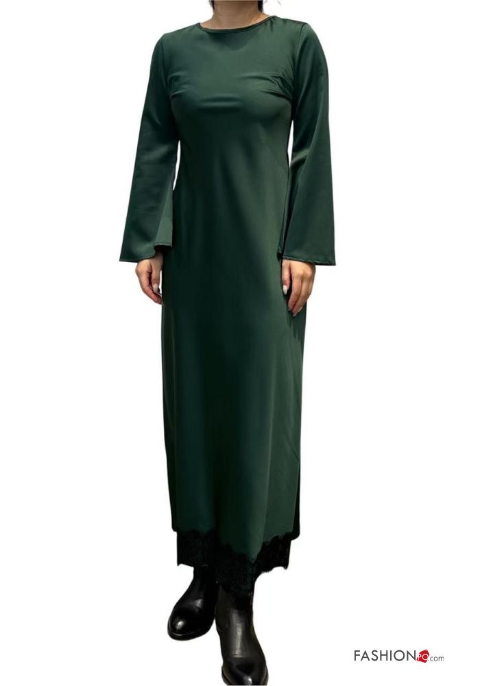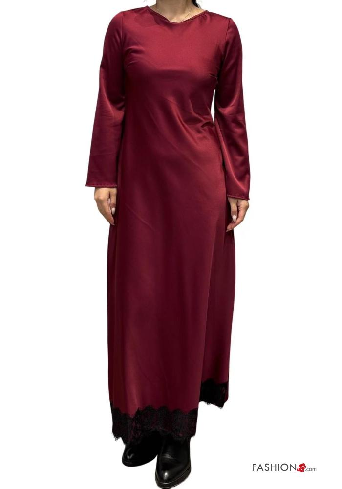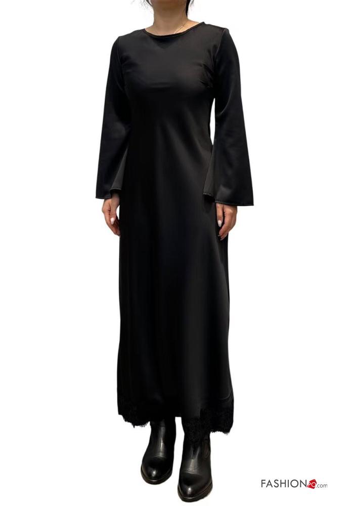 Abito pizzo girocollo lungo maniche lunghe raso