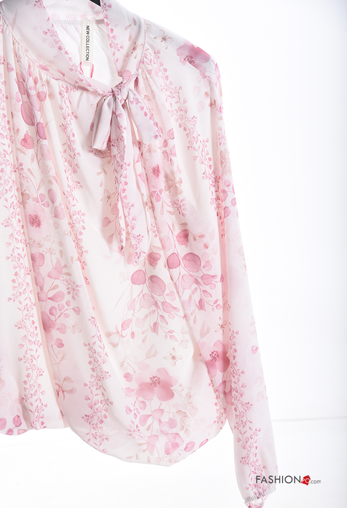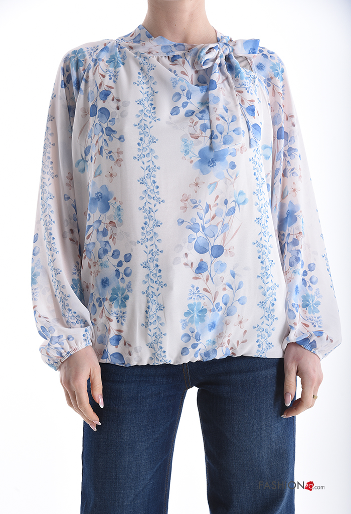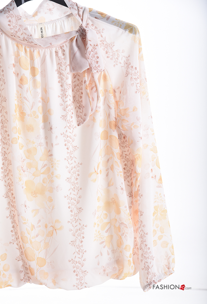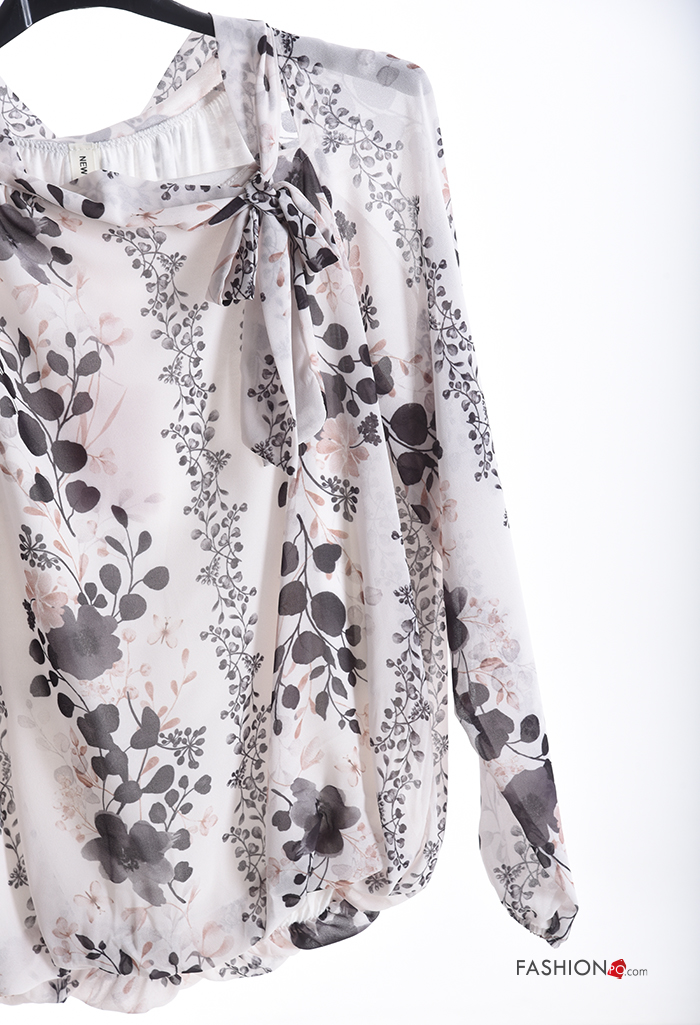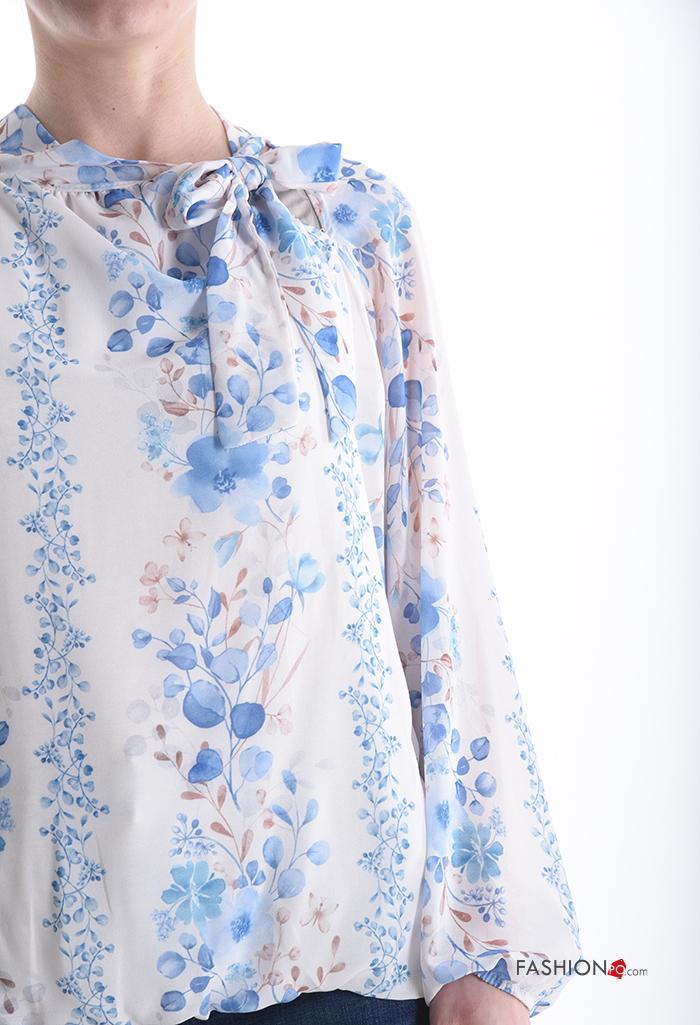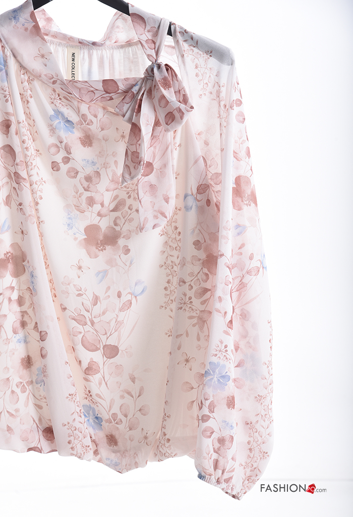 Blusa maniche lunghe Fantasia floreale con fiocco con fodera