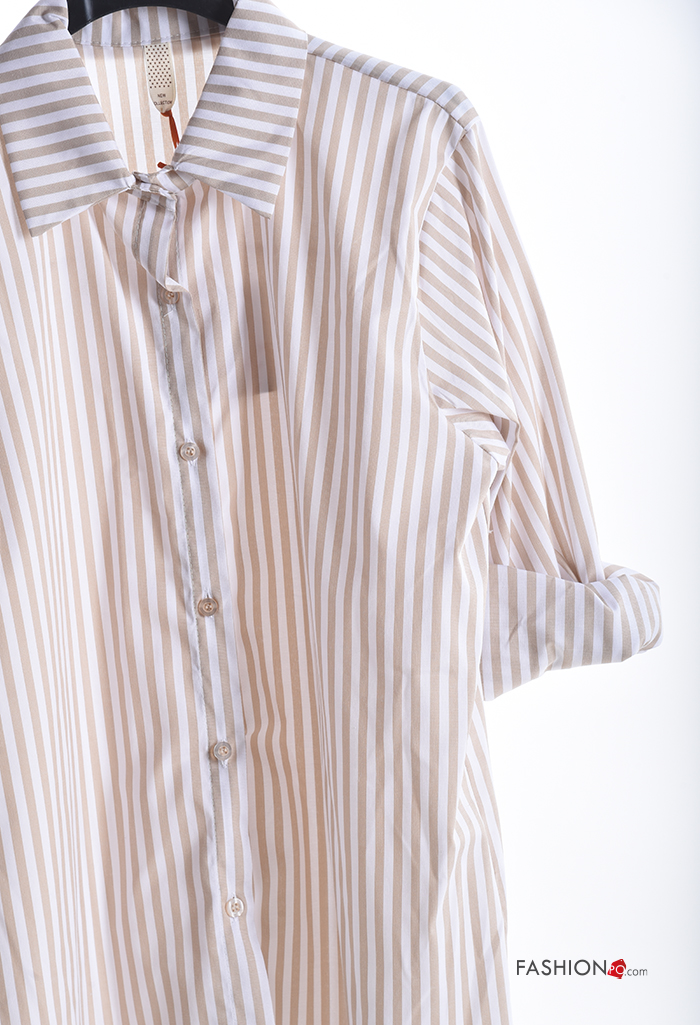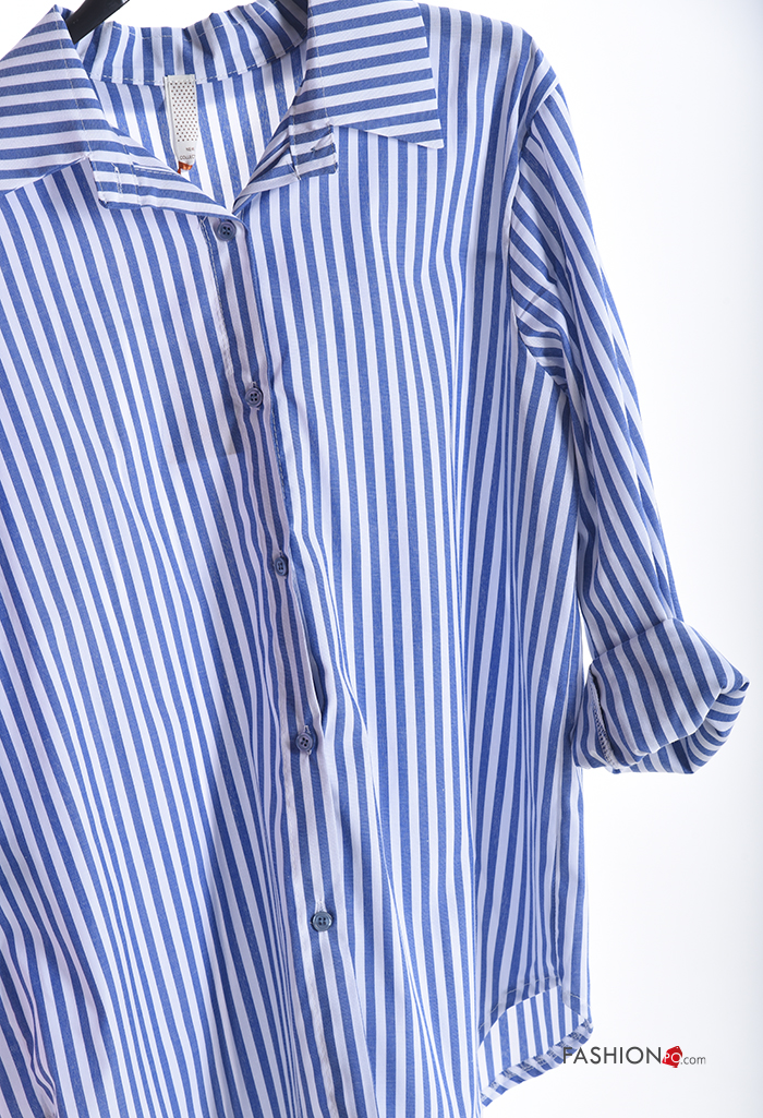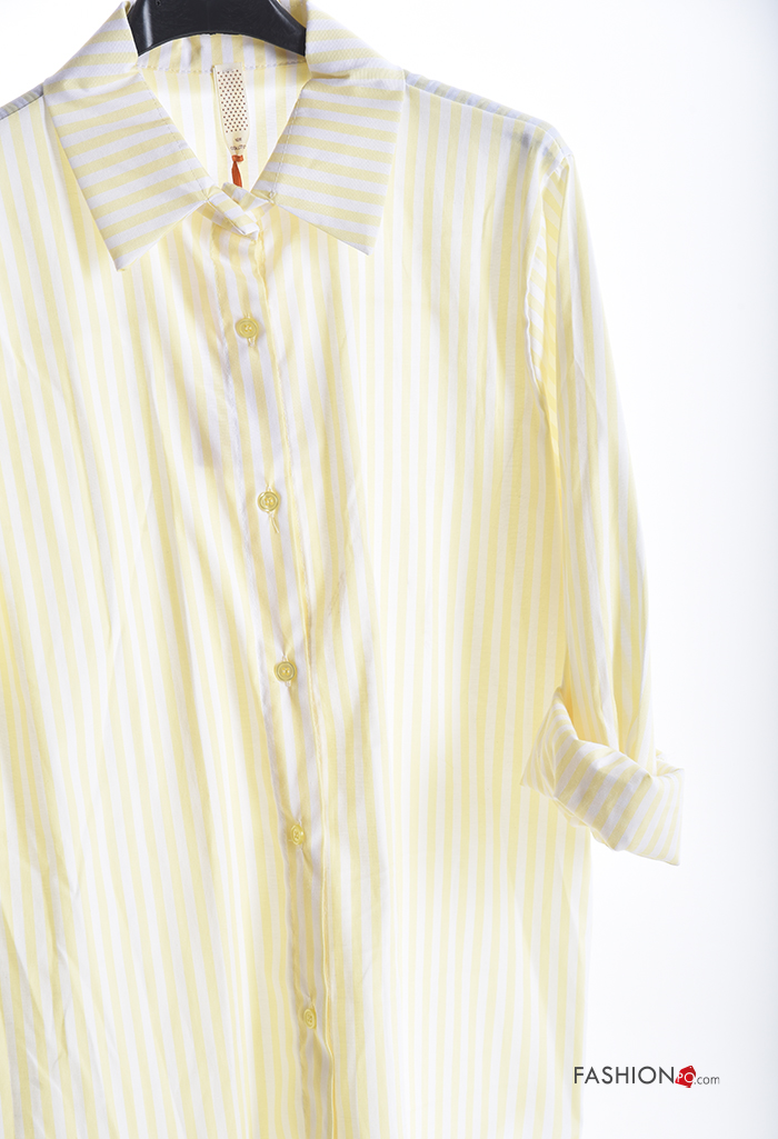 Camicia in Cotone maniche lunghe con colletto Fantasia righe con bottoni
