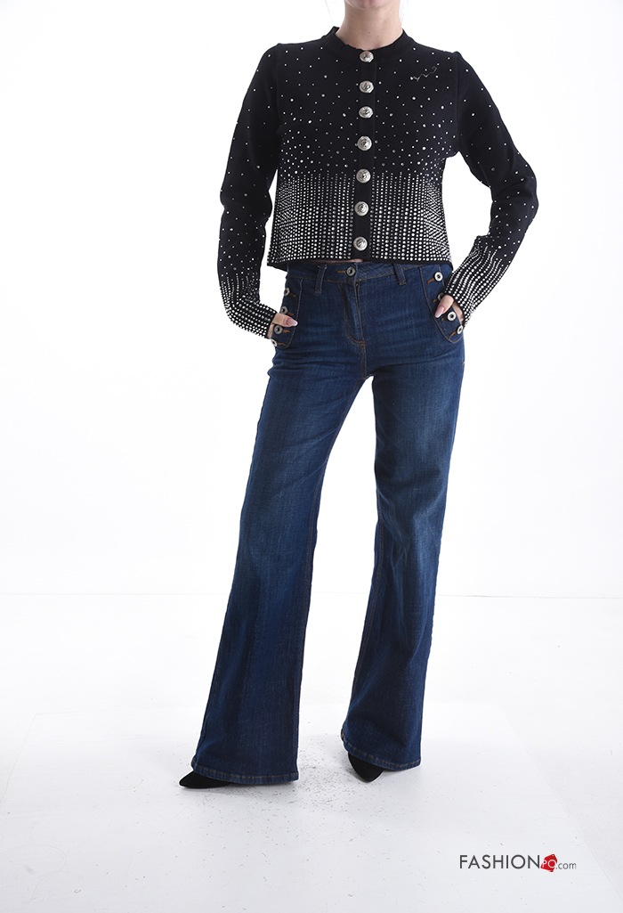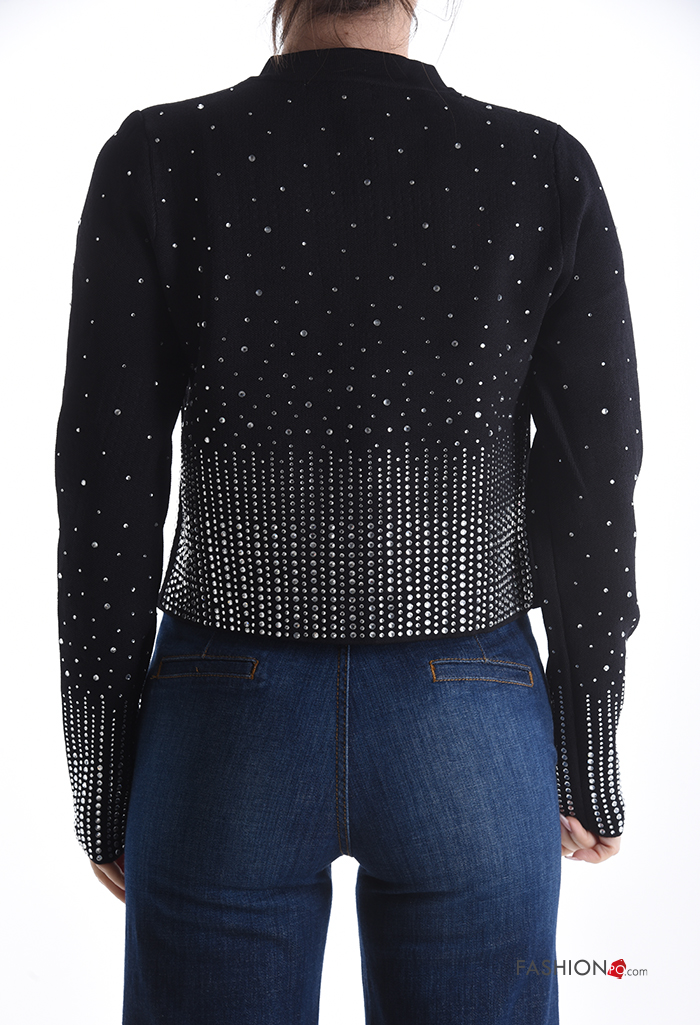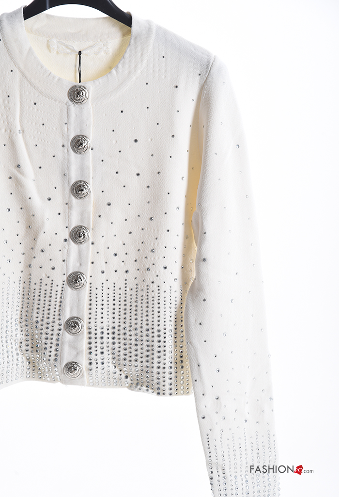 Cardigan maniche lunghe girocollo con bottoni con strass