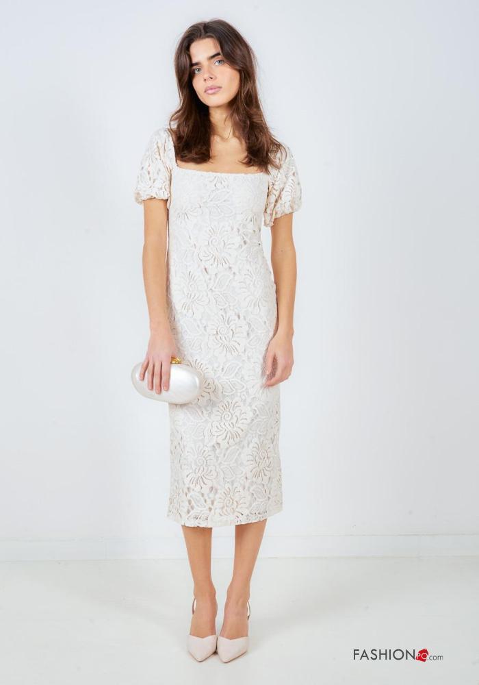 Abito in Cotone maniche corte maniche a palloncino scollato sulla schiena