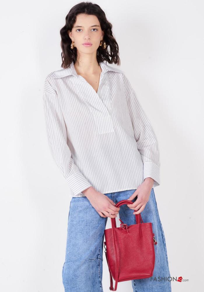 Blusa maniche lunghe con colletto Fantasia righe scollo a V