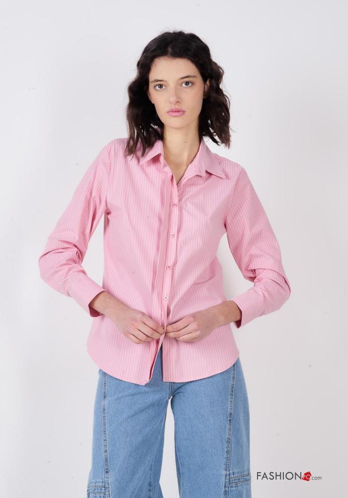 Camicia in Cotone maniche lunghe con colletto Fantasia righe con bottoni