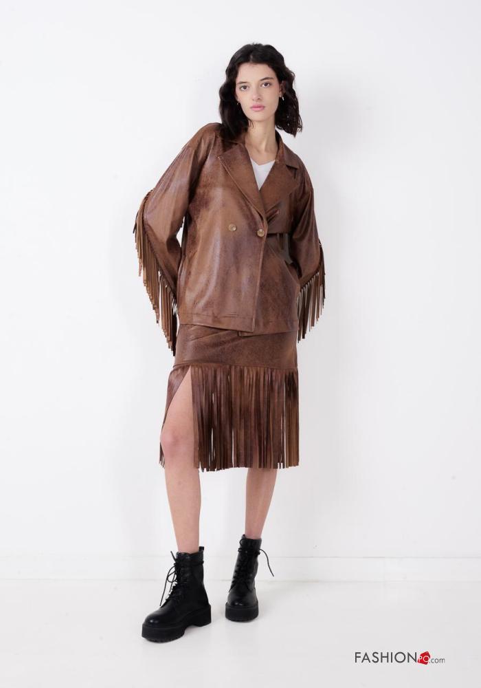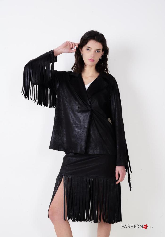 Cappotto ecopelle maniche lunghe con bottoni con frange