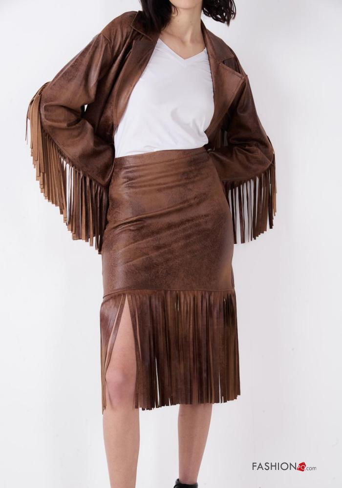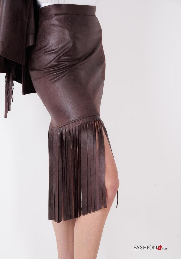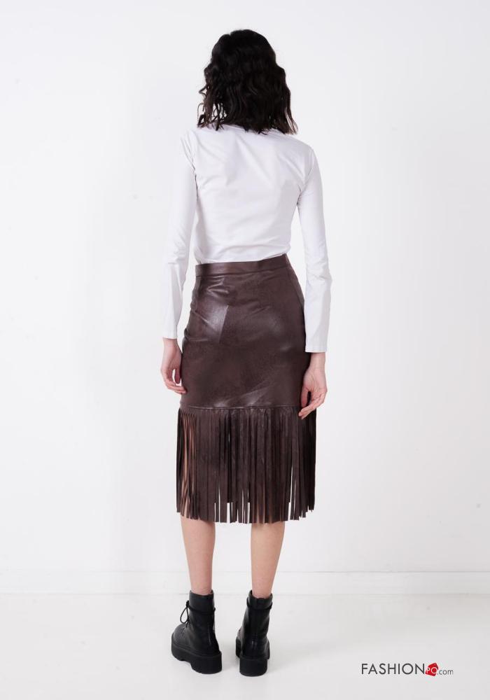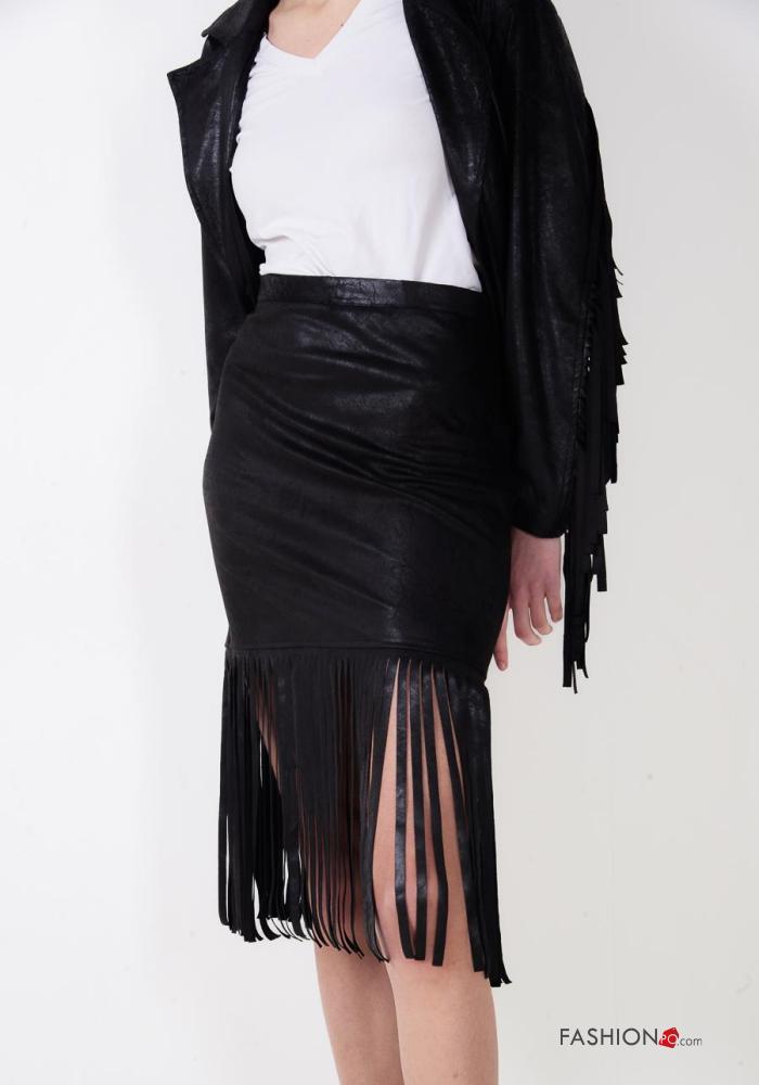 Gonna ecopelle con zip con frange