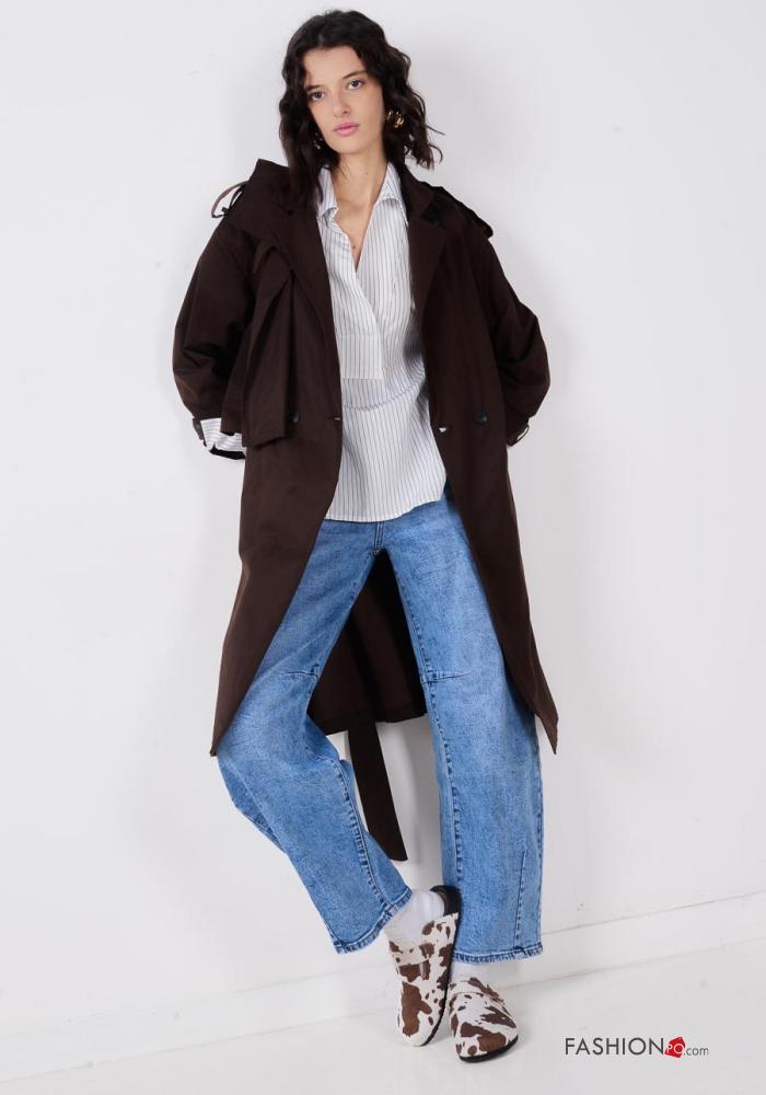 Trench in Cotone maniche lunghe con cintura in stoffa con bottoni con tasche