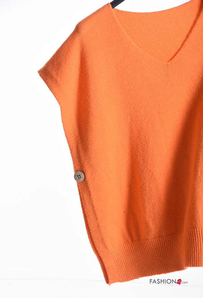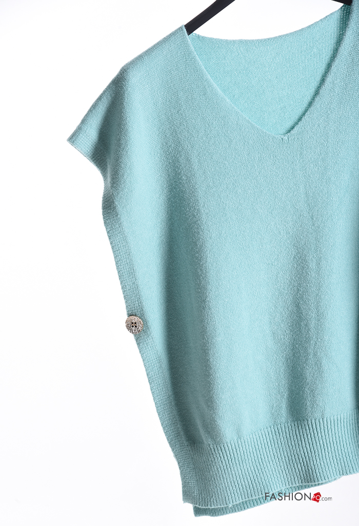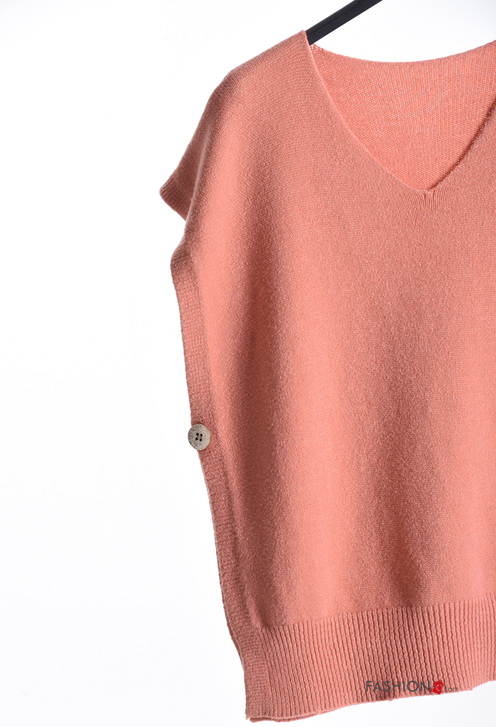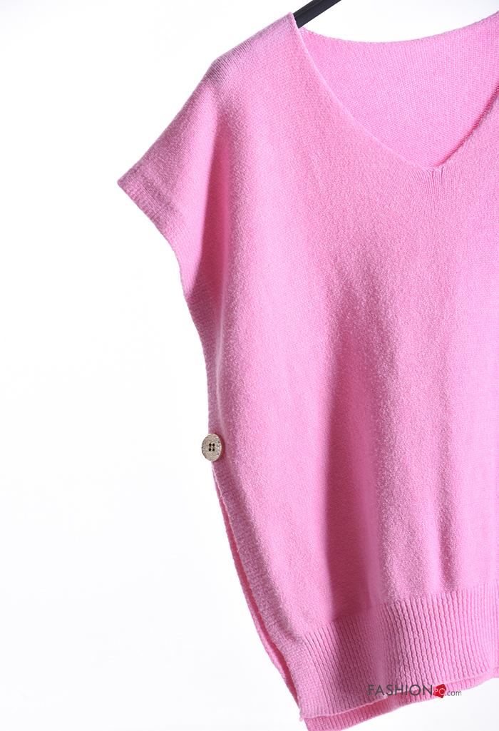 Maglione maniche corte con spacco con bottoni scollo a V