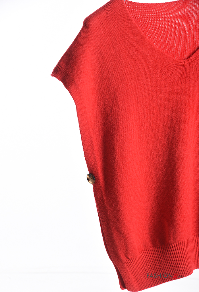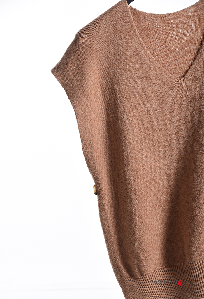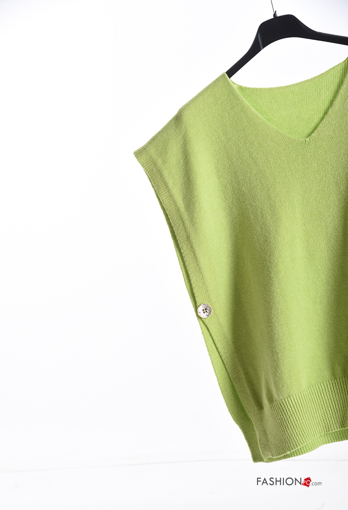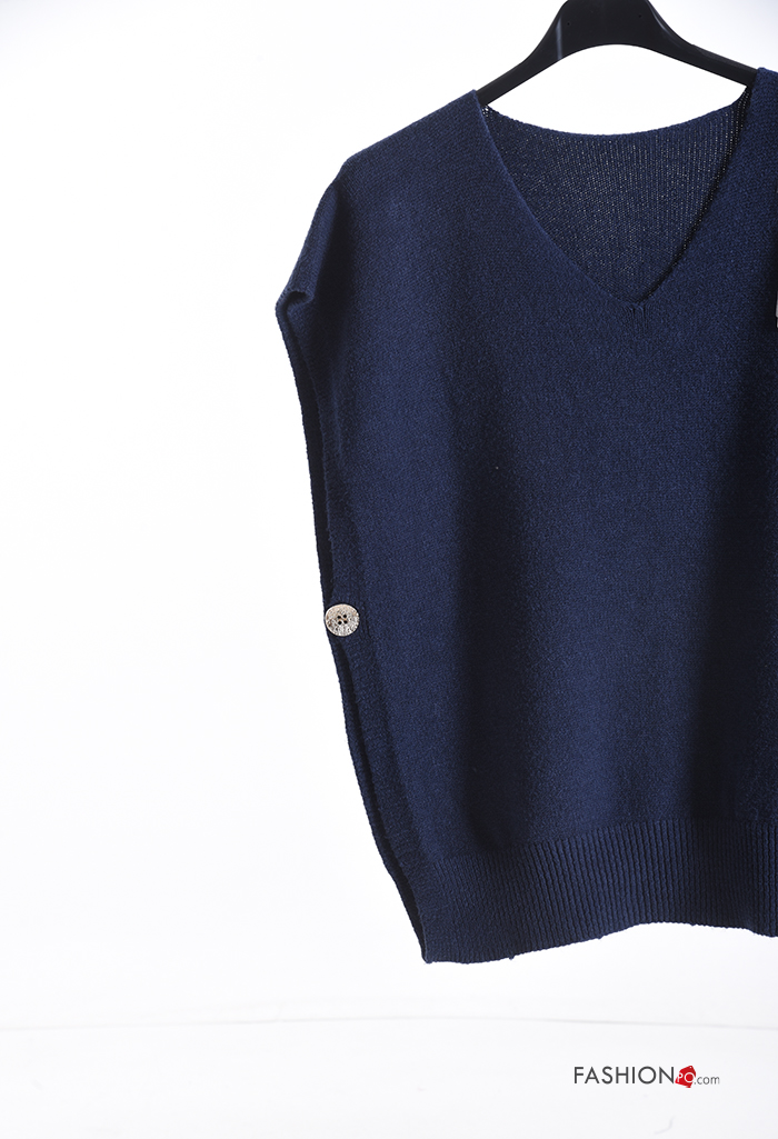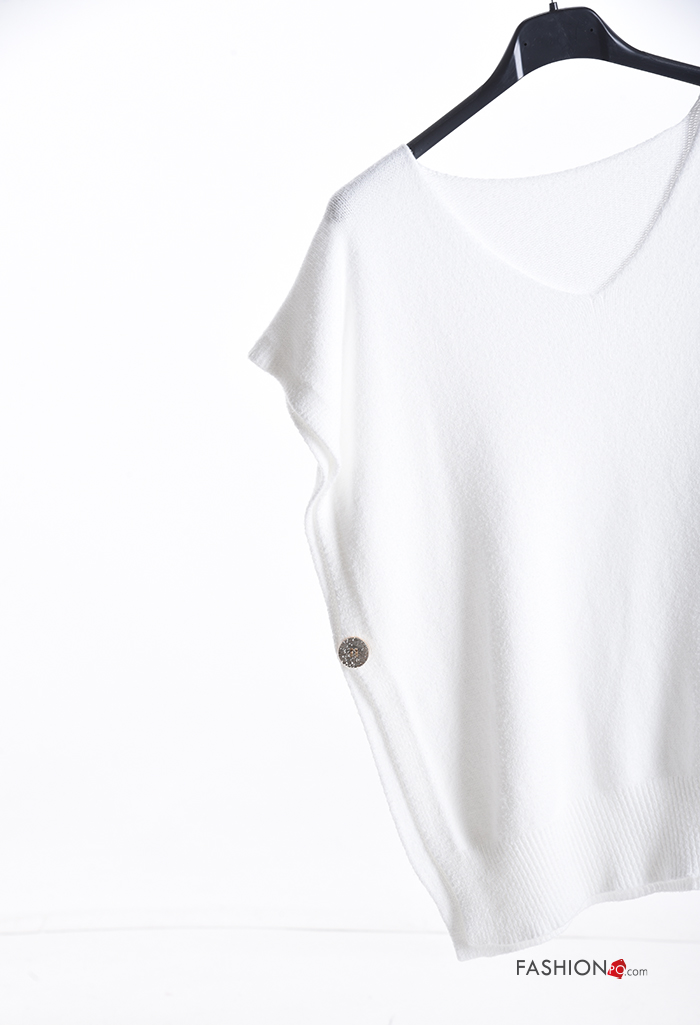 Maglione maniche corte con spacco con bottoni scollo a V