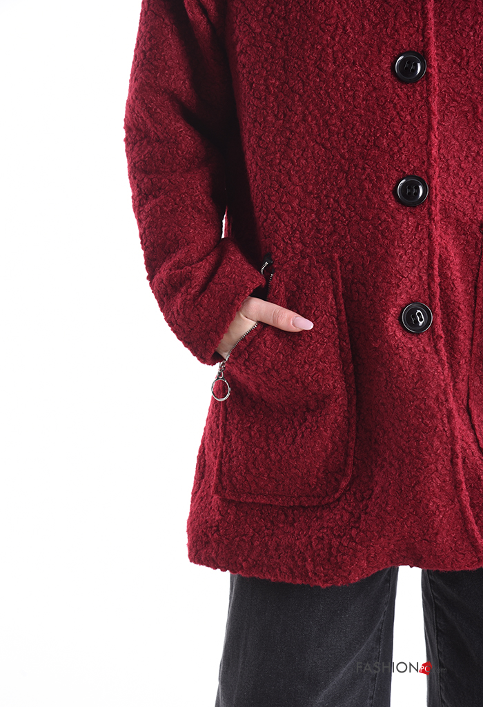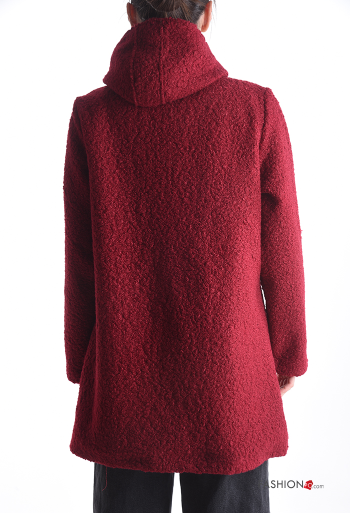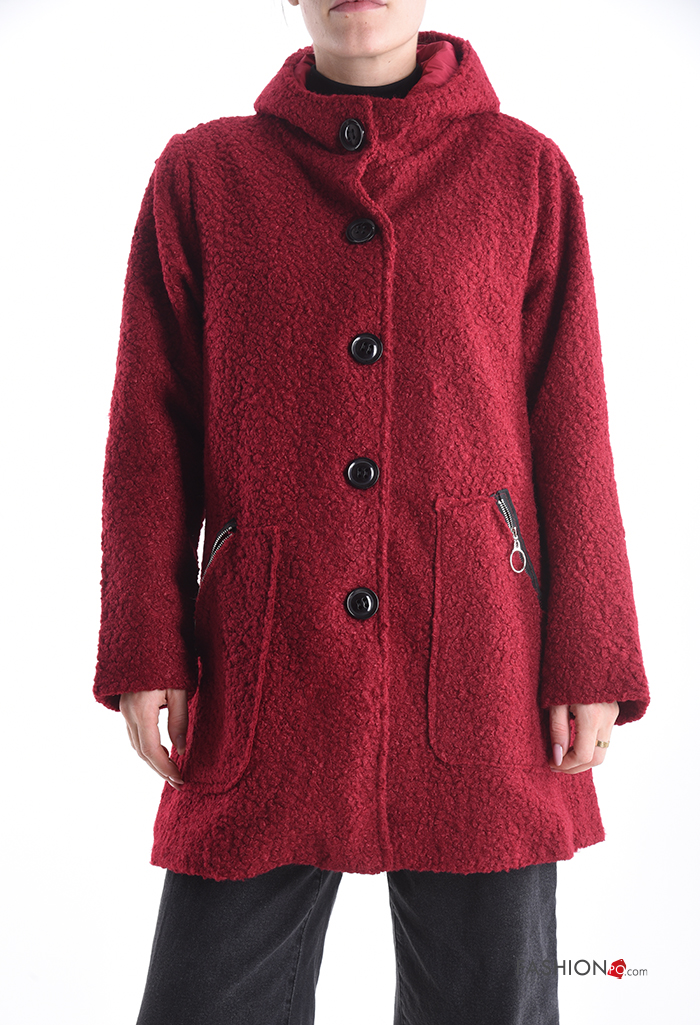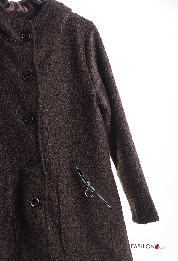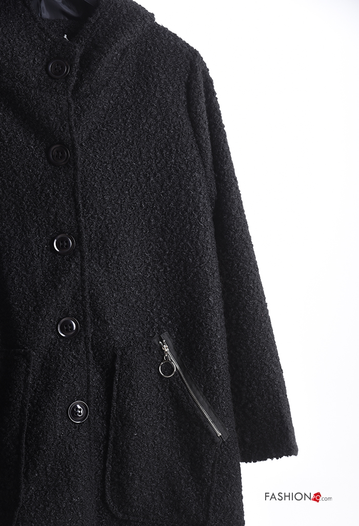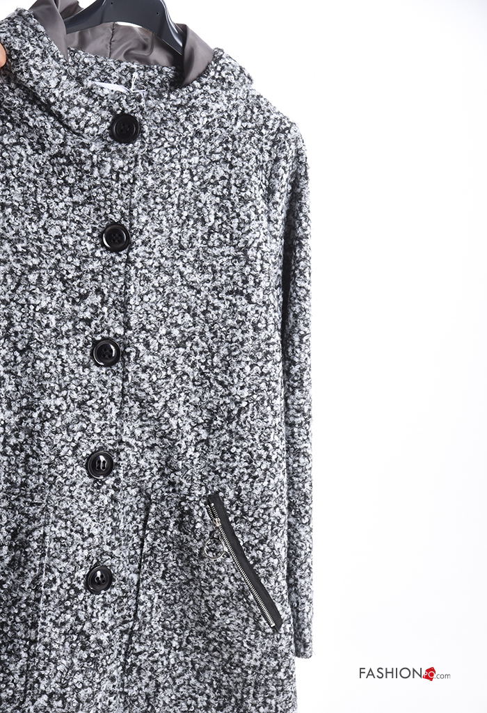 Cappotto con zip con bottoni con cappuccio senza fodera con tasche