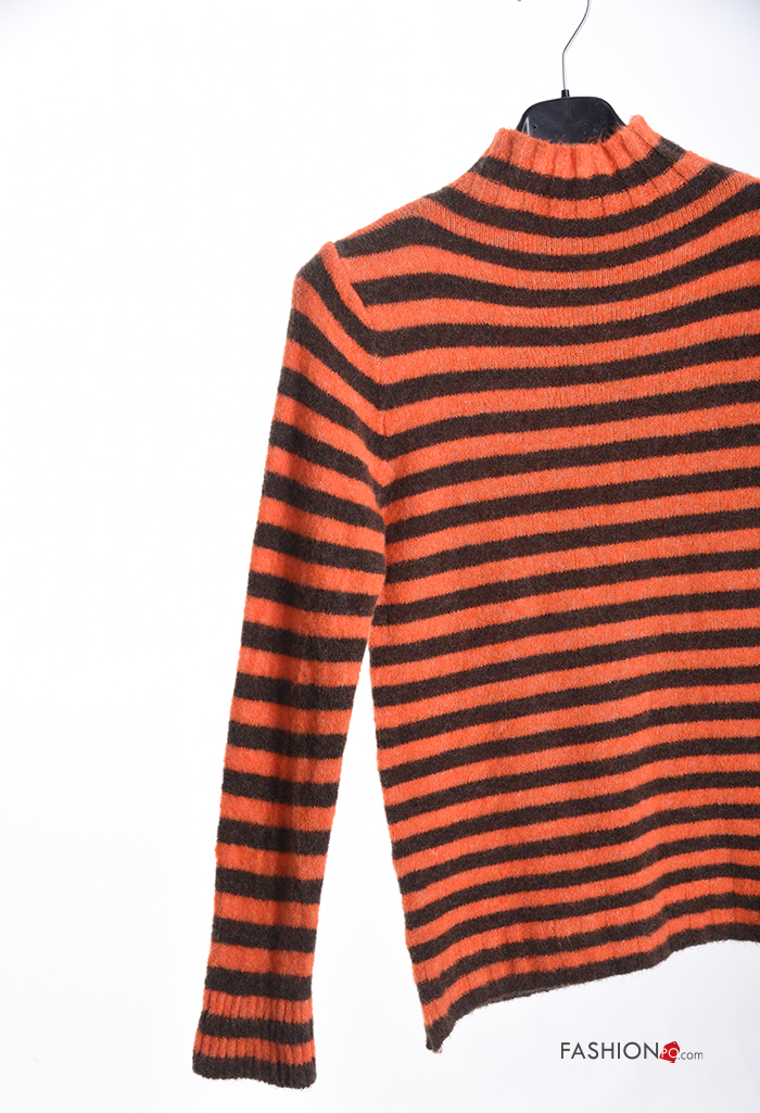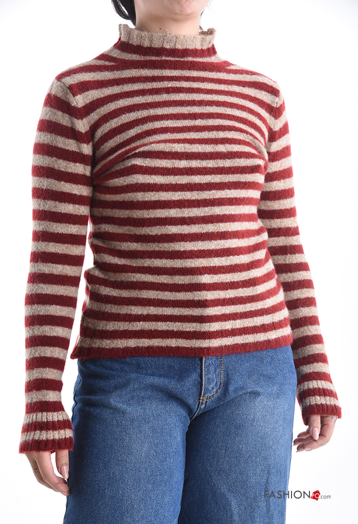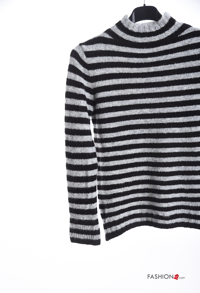 Maglione in Misto Lana maniche lunghe Fantasia righe a collo alto