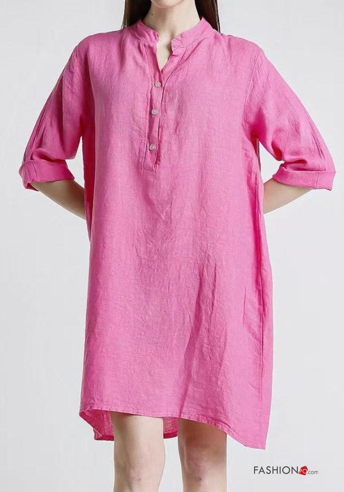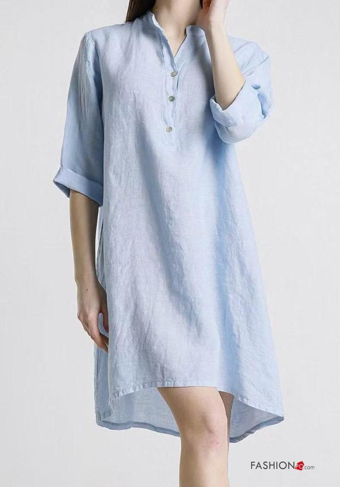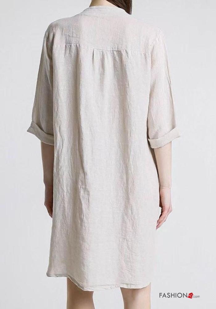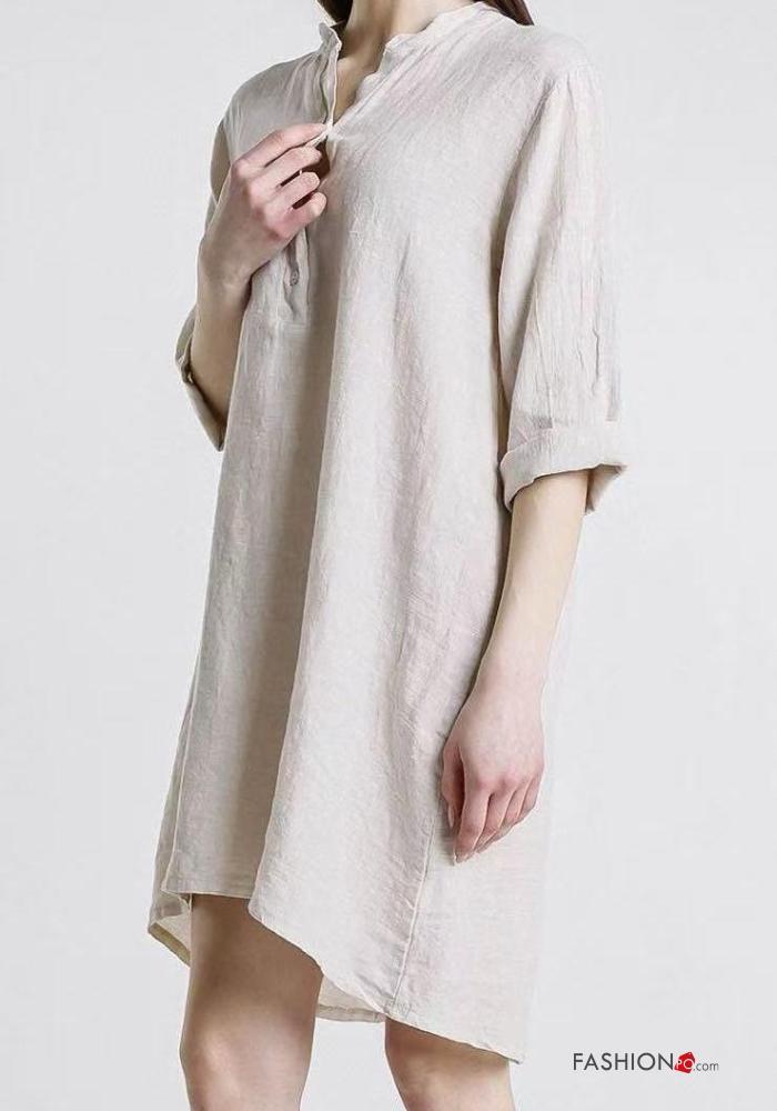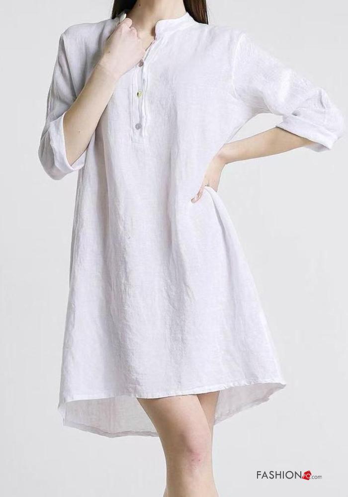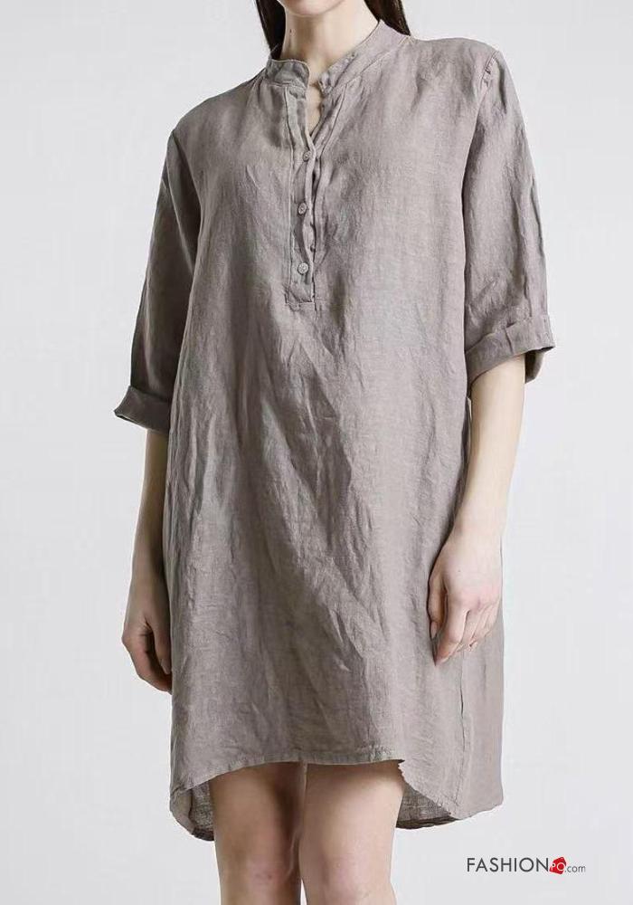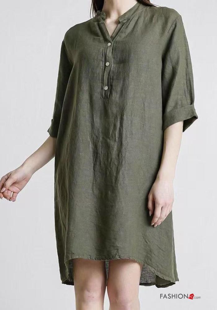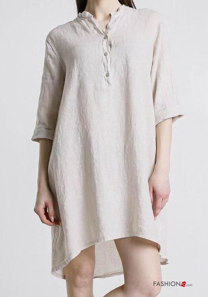 Abito in Lino con bottoni maniche a tre quarti