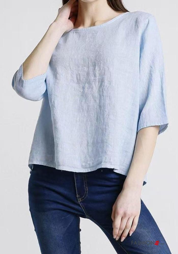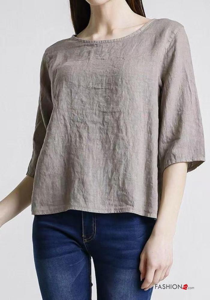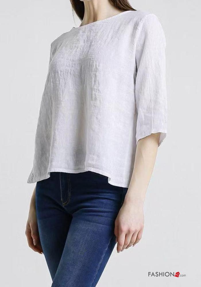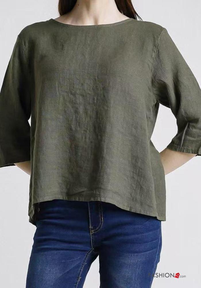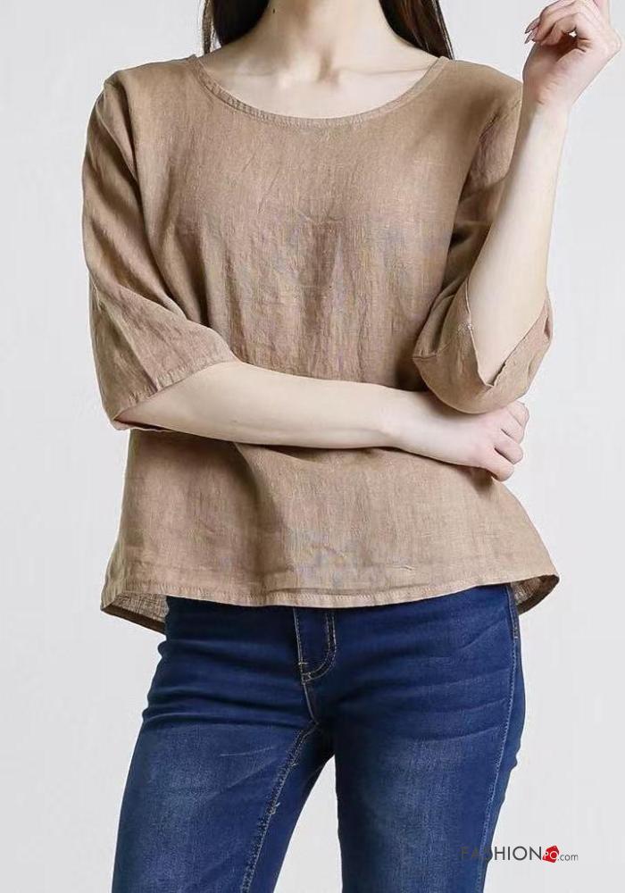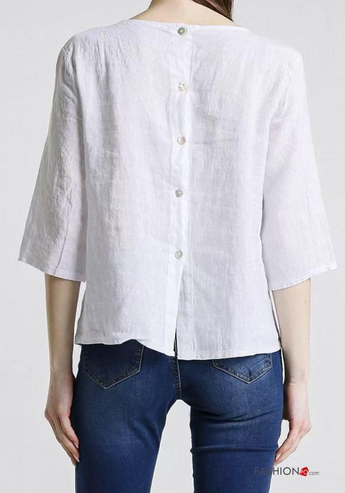 Top in Lino girocollo con bottoni