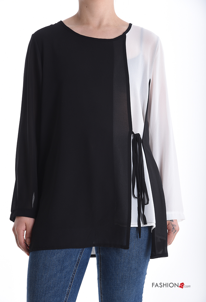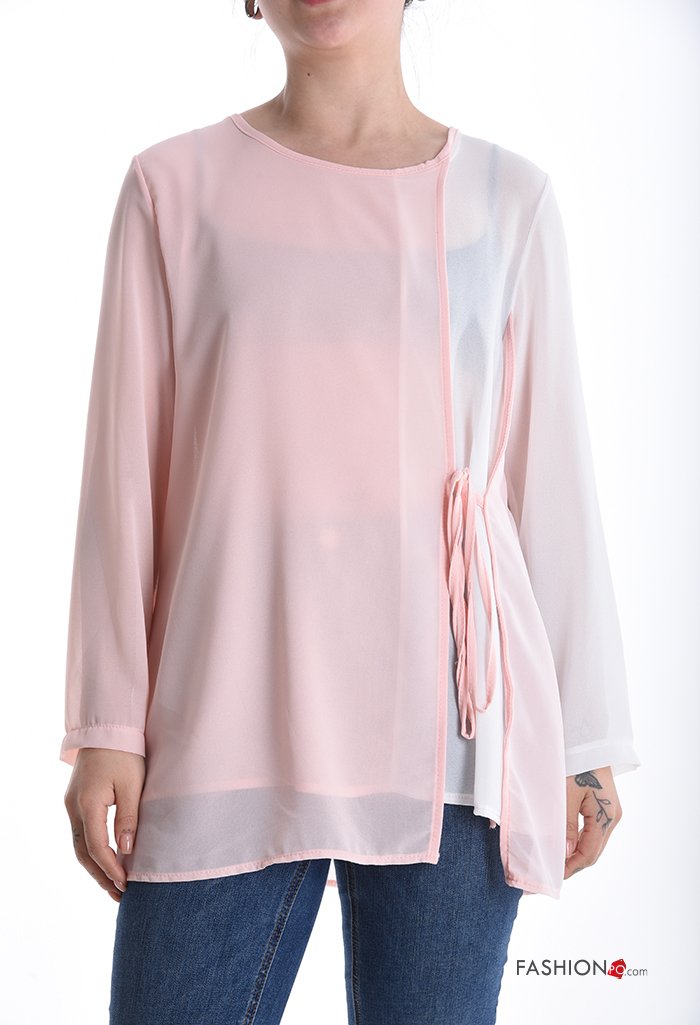 Home > Brands > LEDA MODA > Camicia chiffon maniche lunghe girocollo con nodo