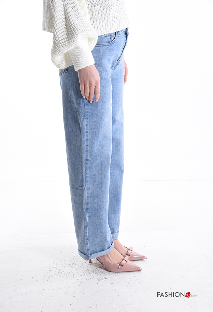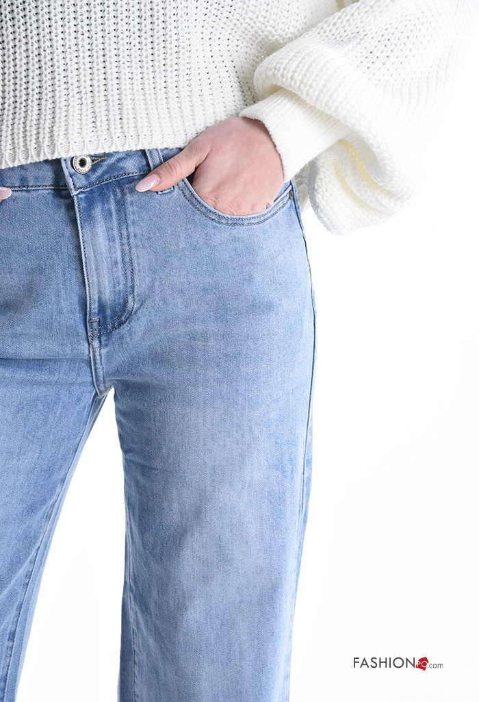 Jeans in Cotone con tasche con bottoni con zip