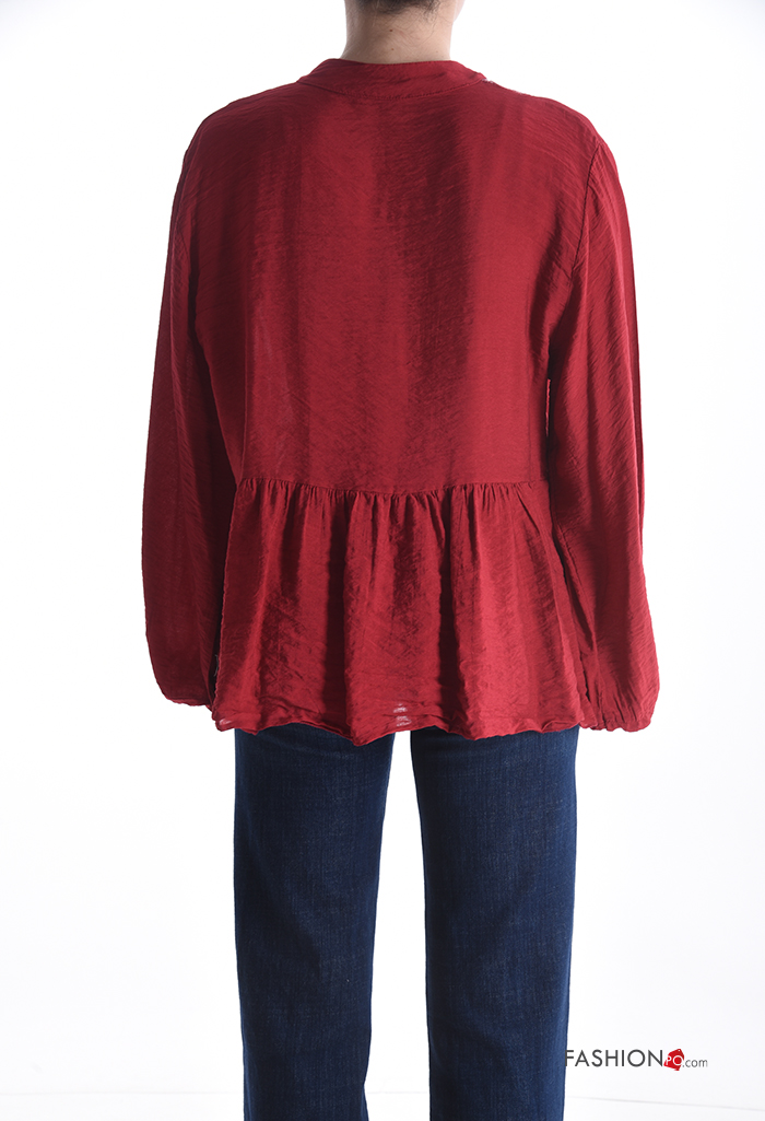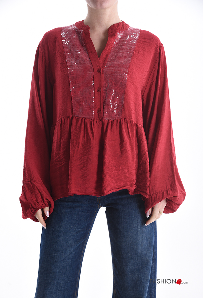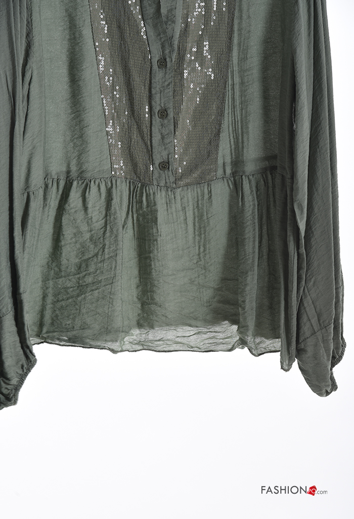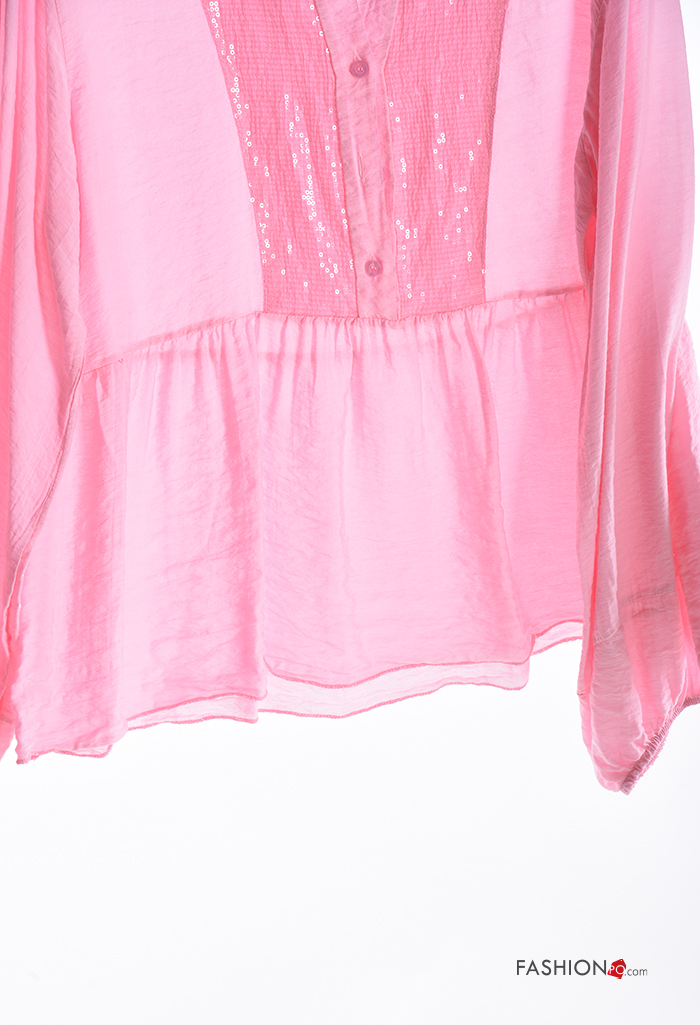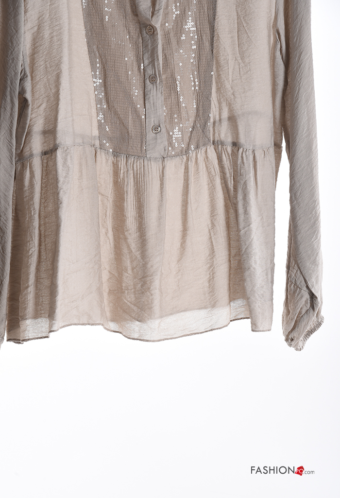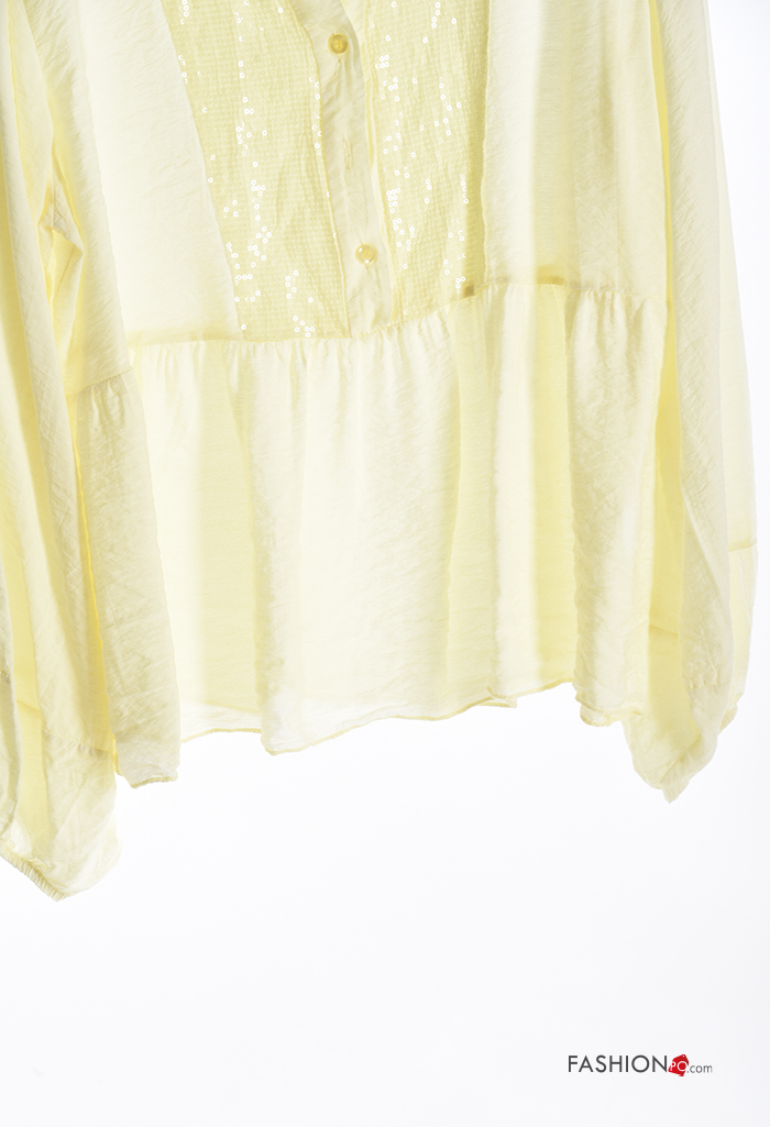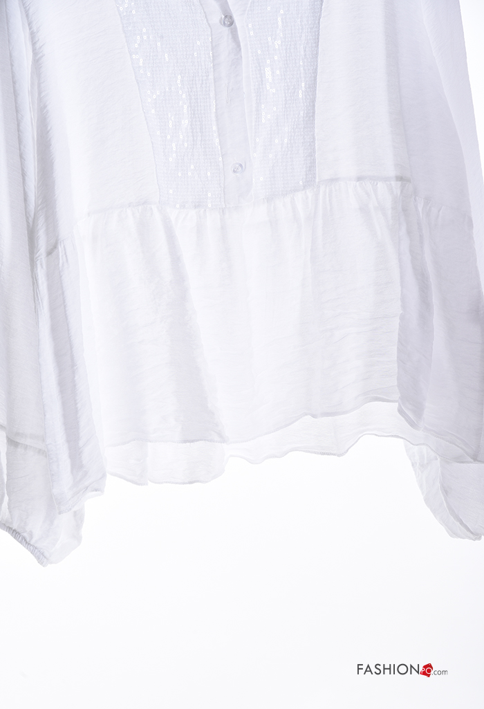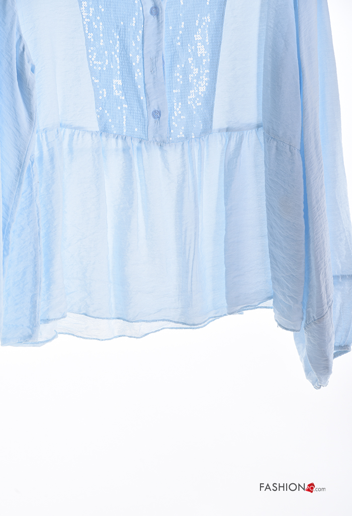 Blusa maniche lunghe con balze con paillettes con bottoni