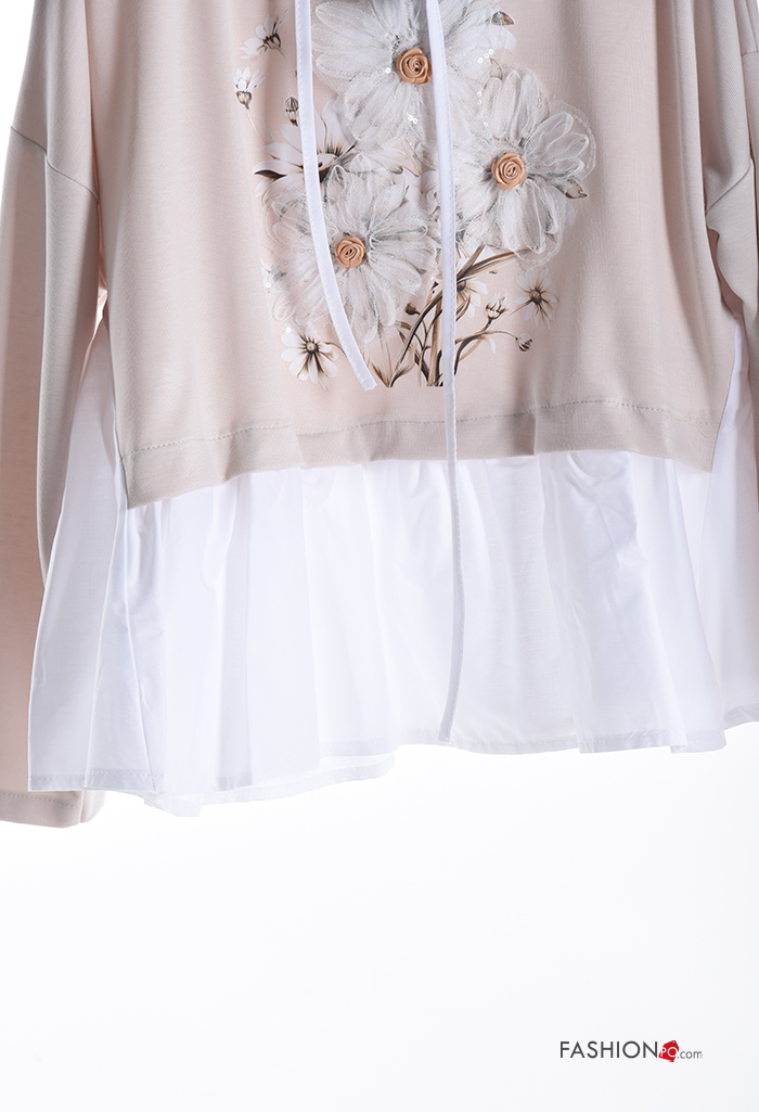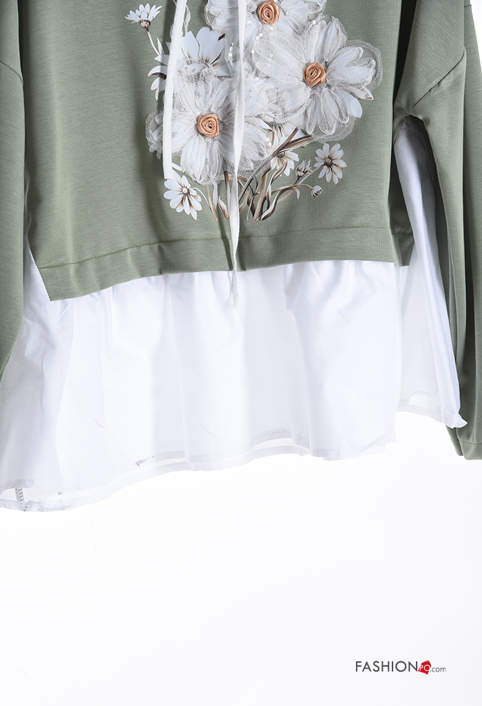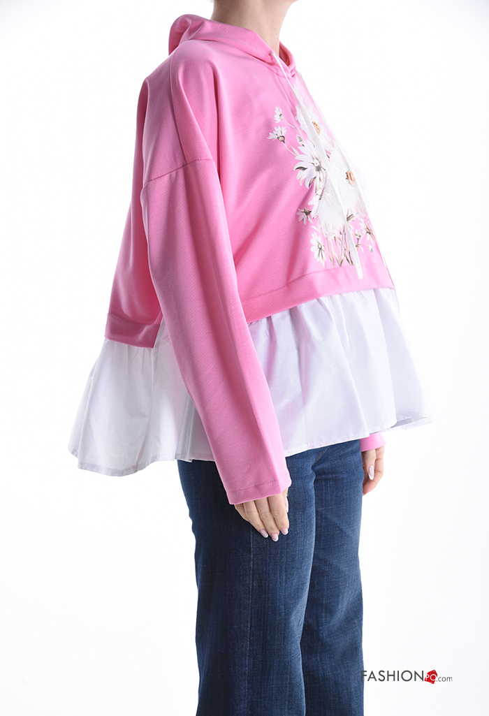 Felpa maniche lunghe Fantasia stampata con cappuccio