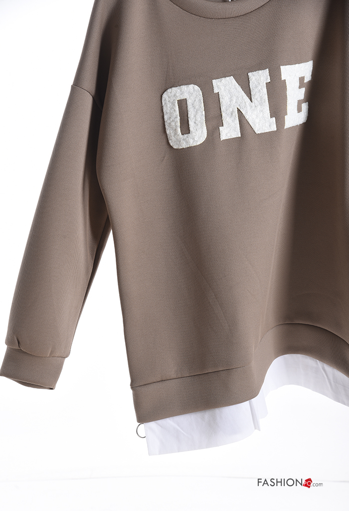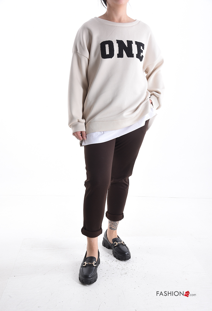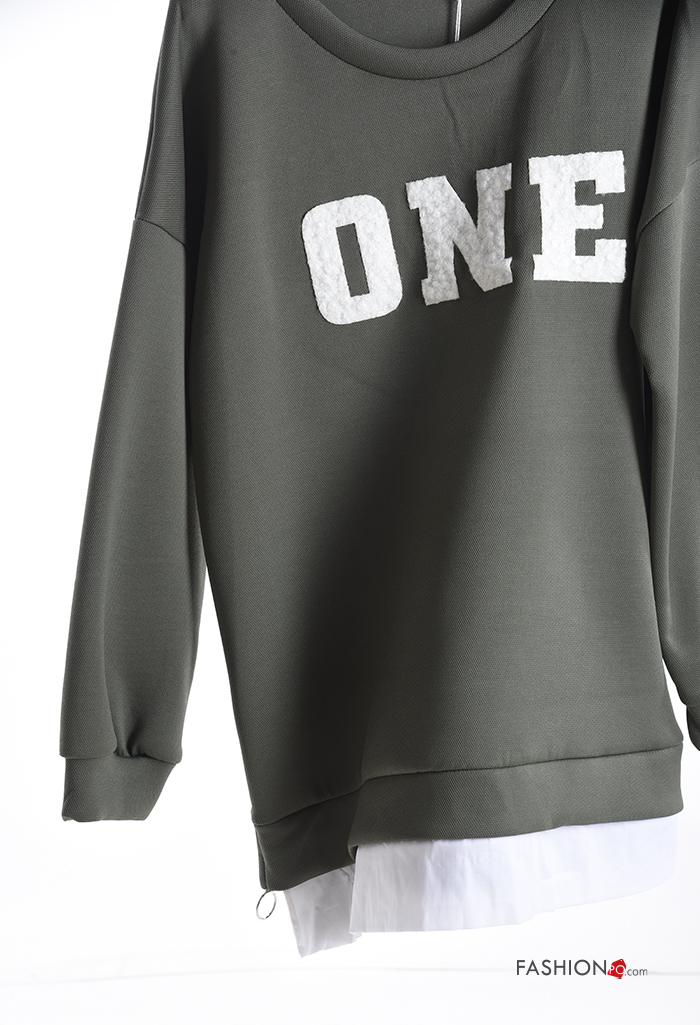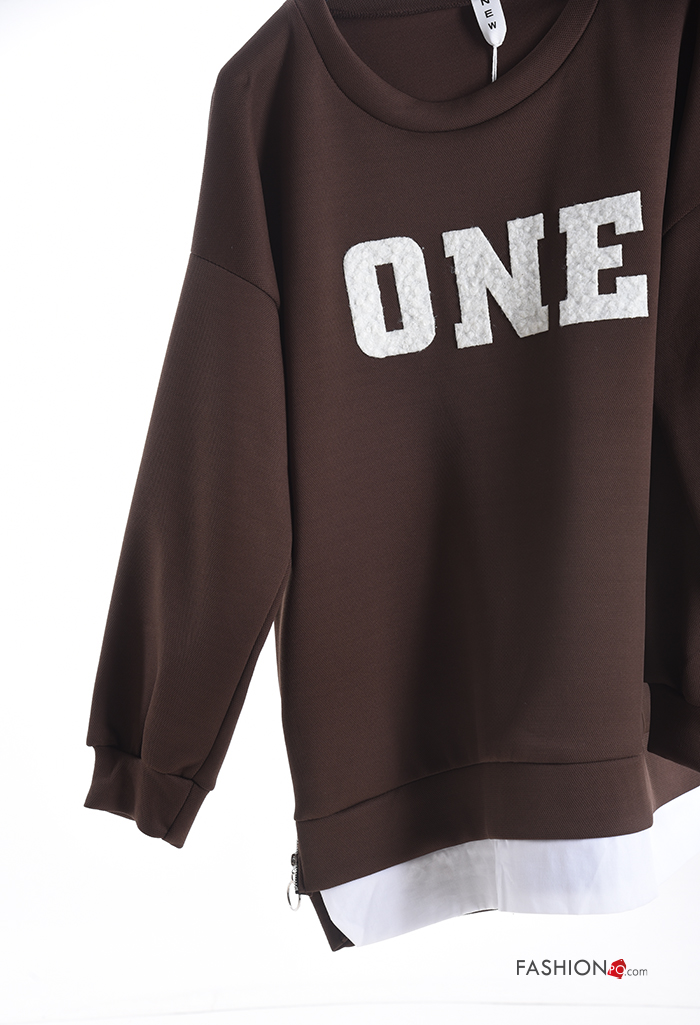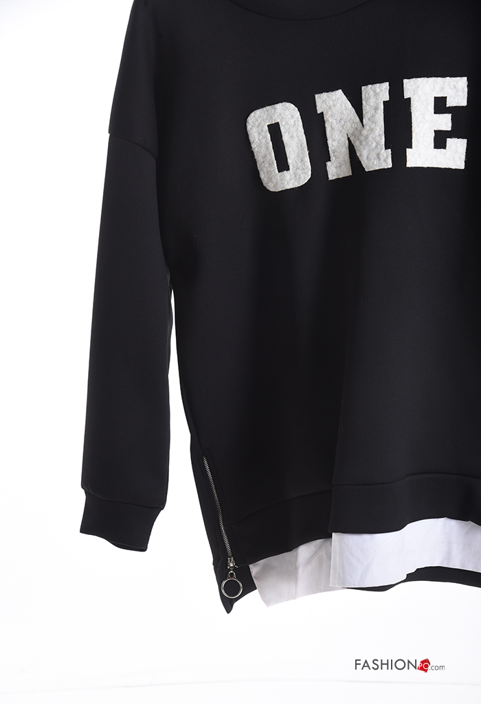 Felpa maniche lunghe girocollo Fantasia scritta con zip
