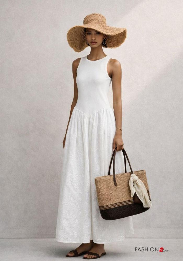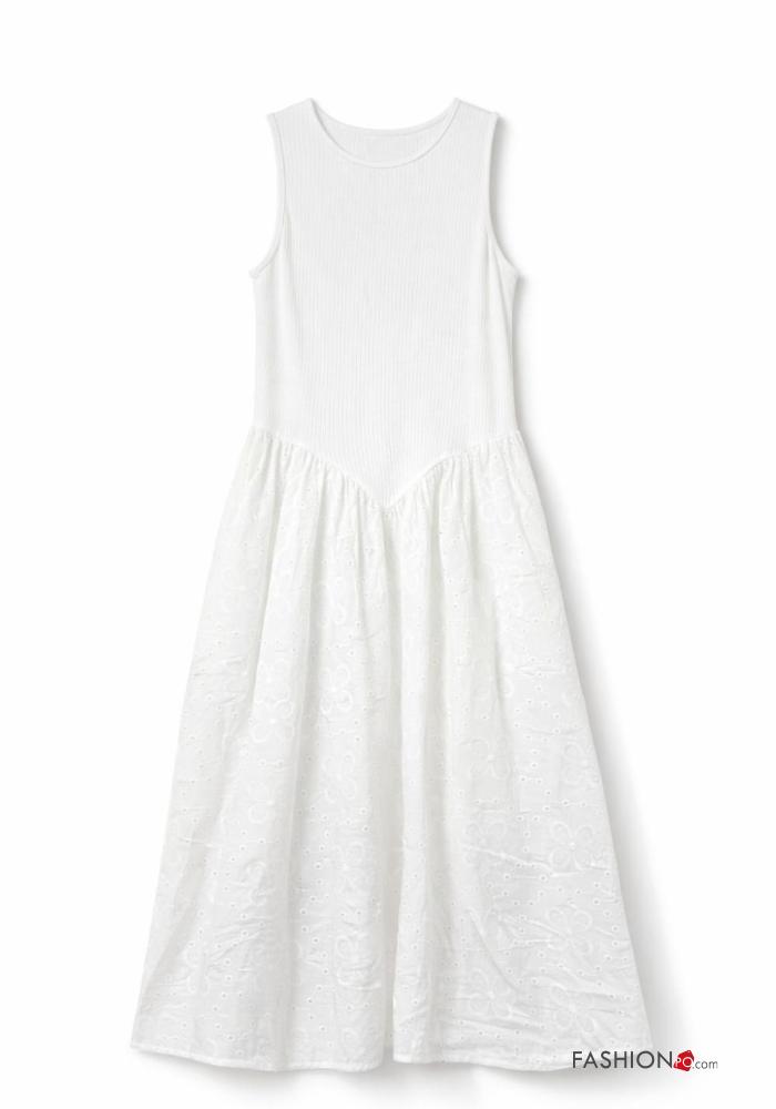 Abito in Cotone senza maniche in pizzo sangallo