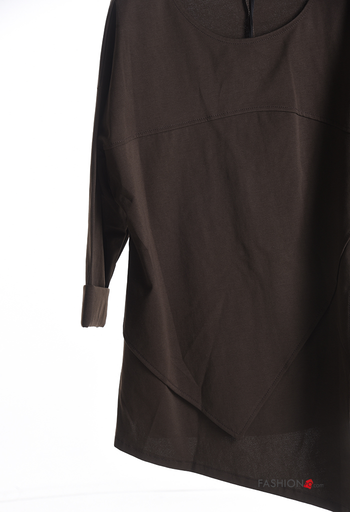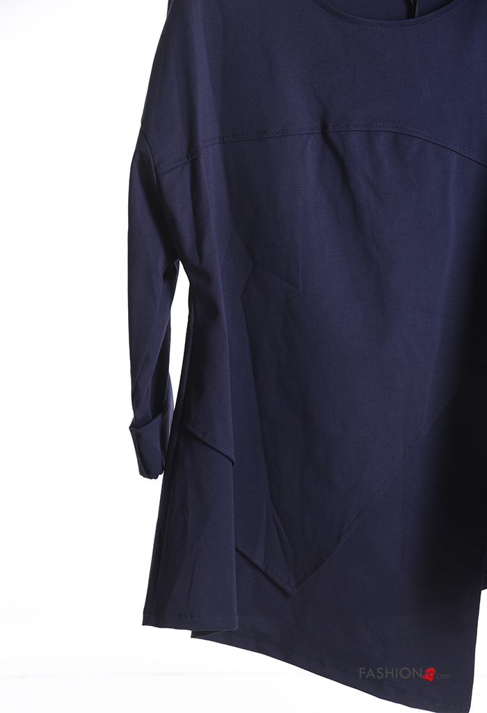 Blusa in Cotone girocollo asimmetrico oversize maniche lunghe