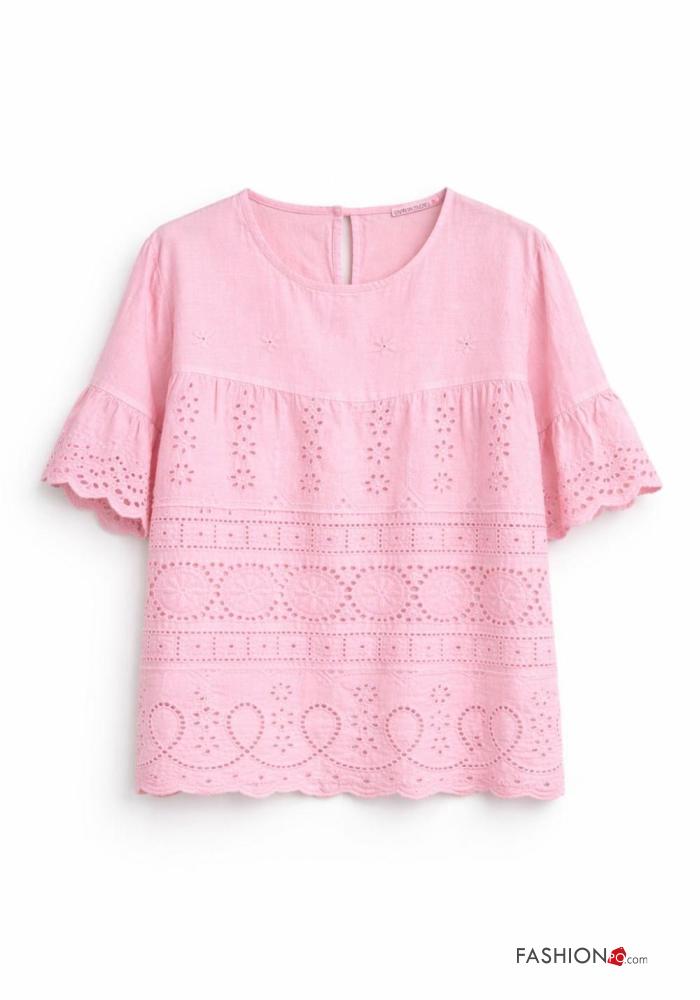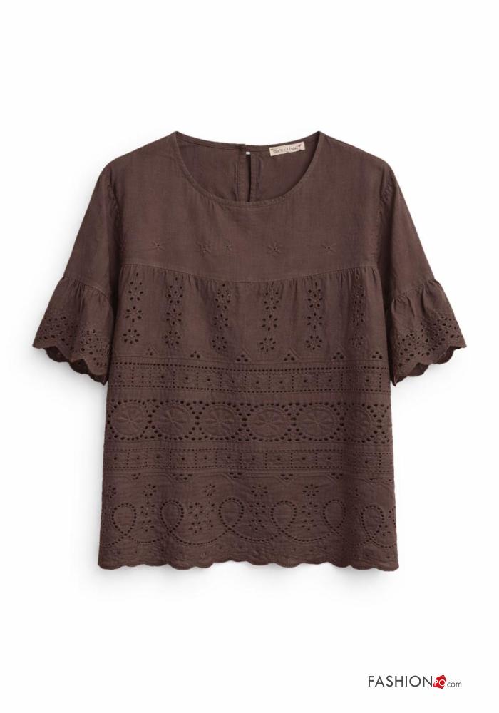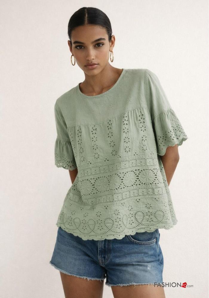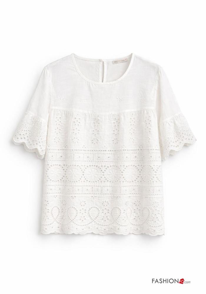 Home > Abbigliamento > Camicie e Bluse > Blusa in Cotone con balze in pizzo sangallo