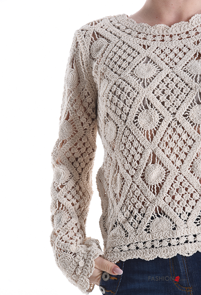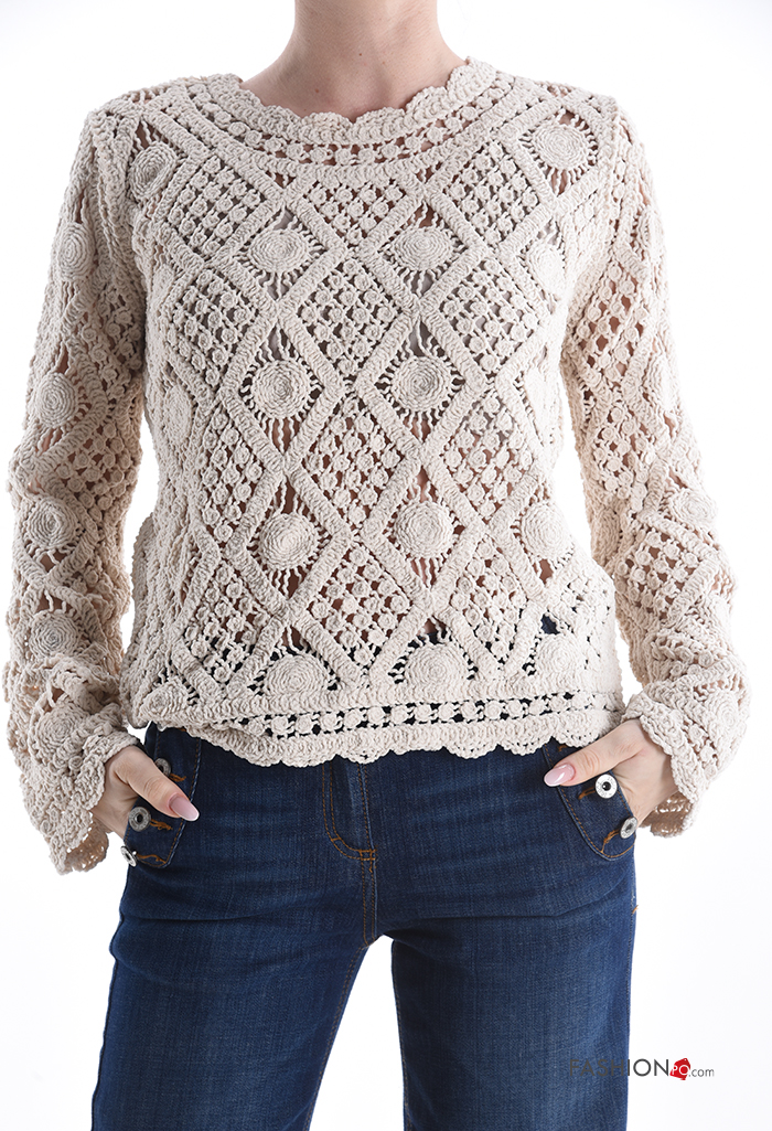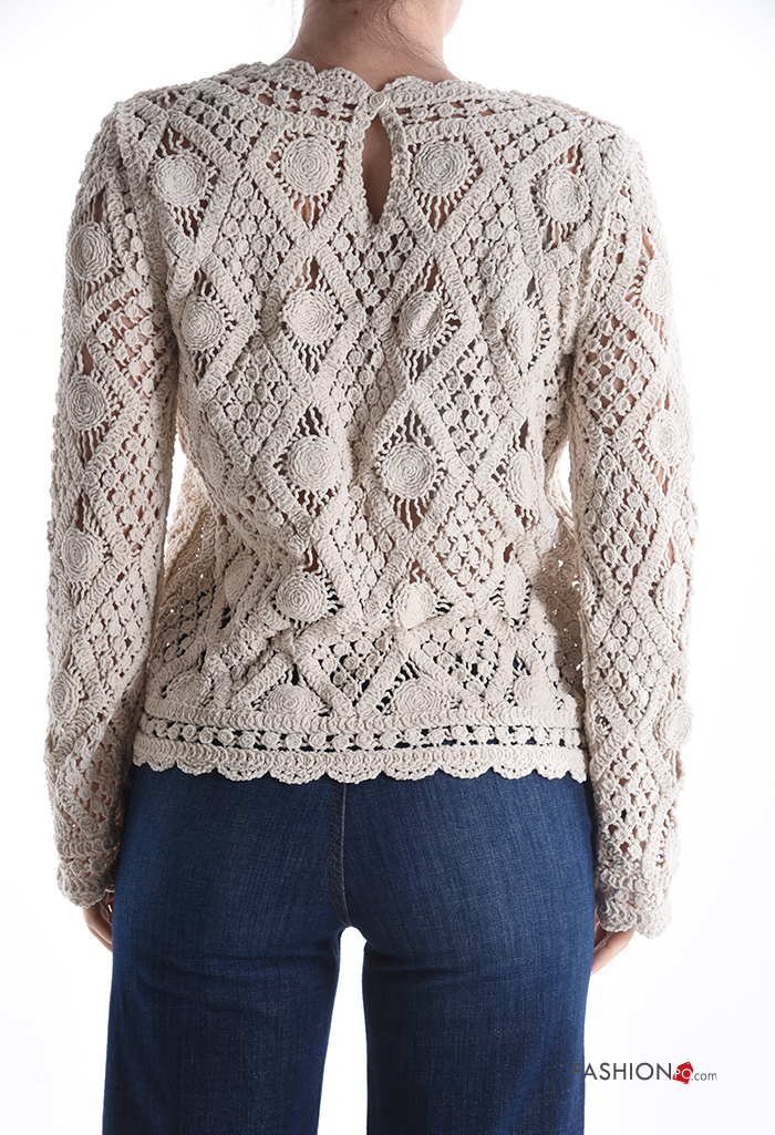 Maglione uncinetto maniche lunghe girocollo Fantasia ricamata