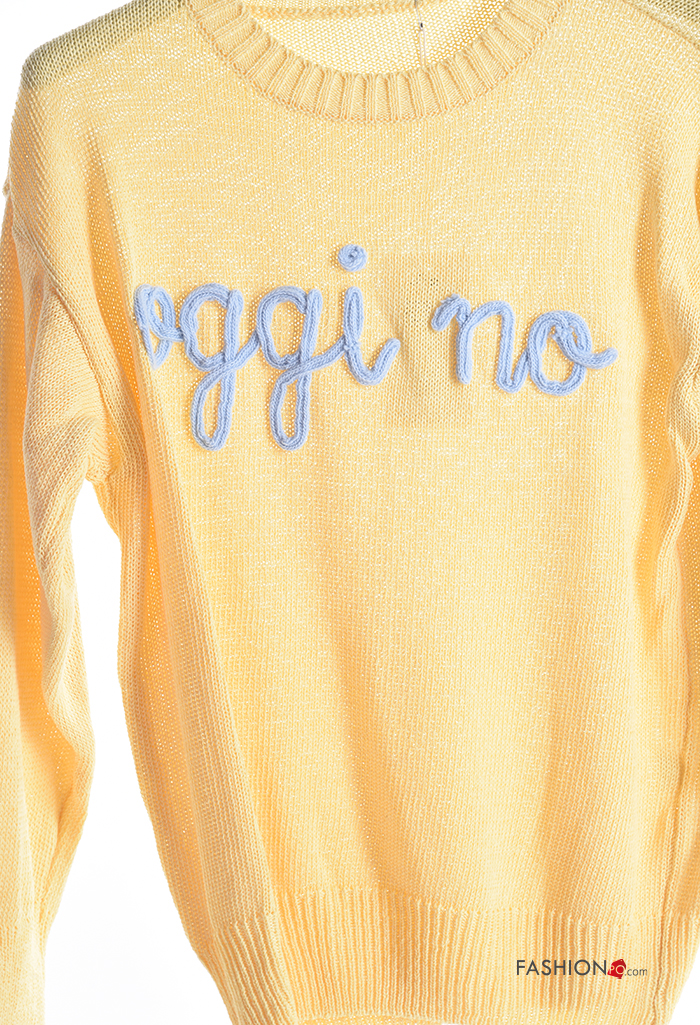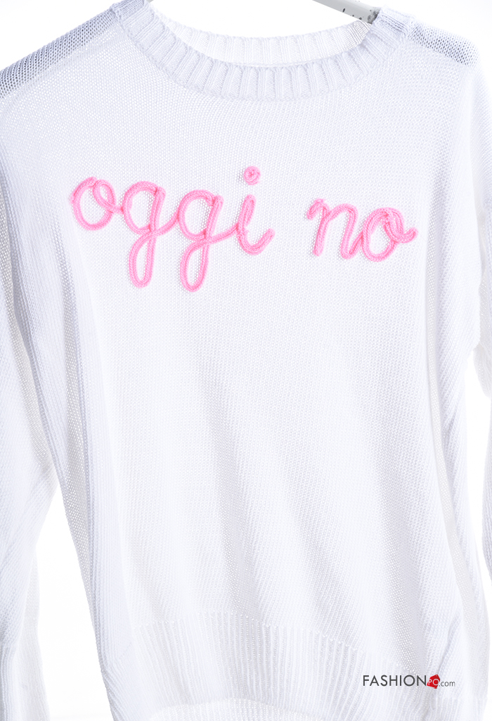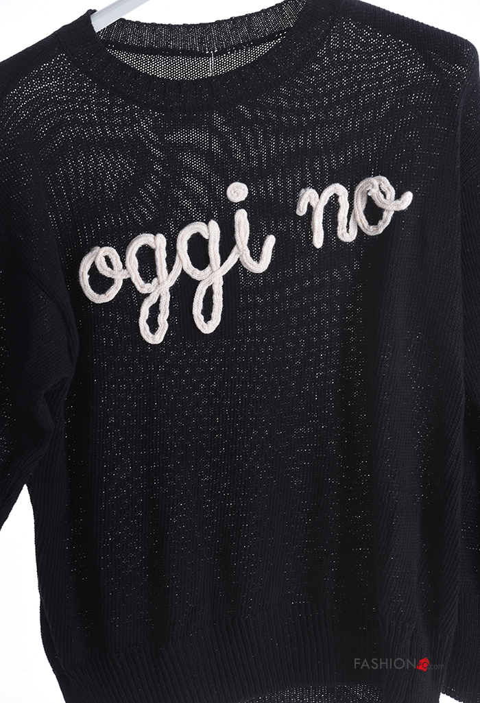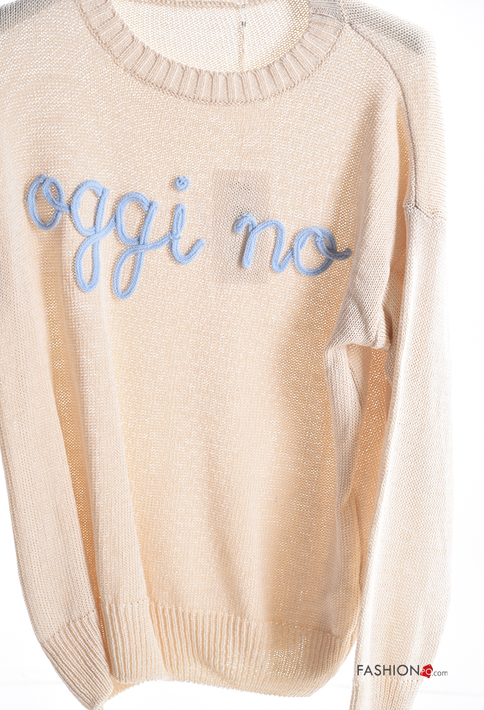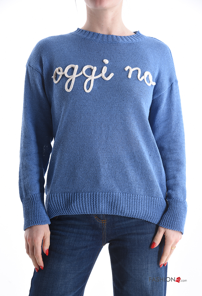 Home > Abbigliamento > Maglieria e Cardigan > Maglione in Cotone maniche lunghe girocollo Fantasia scritta