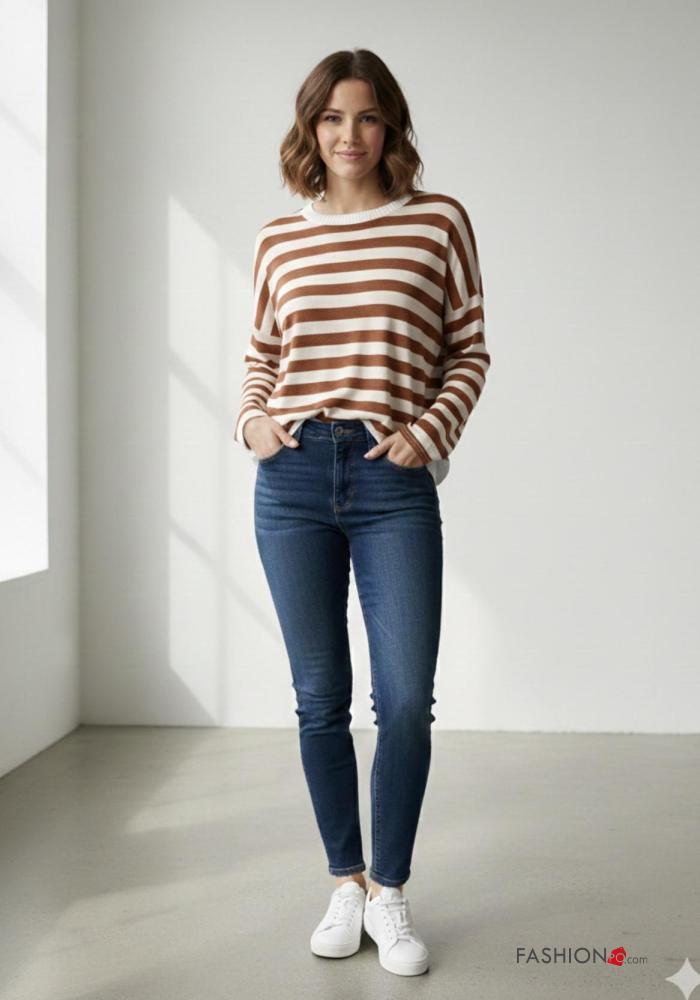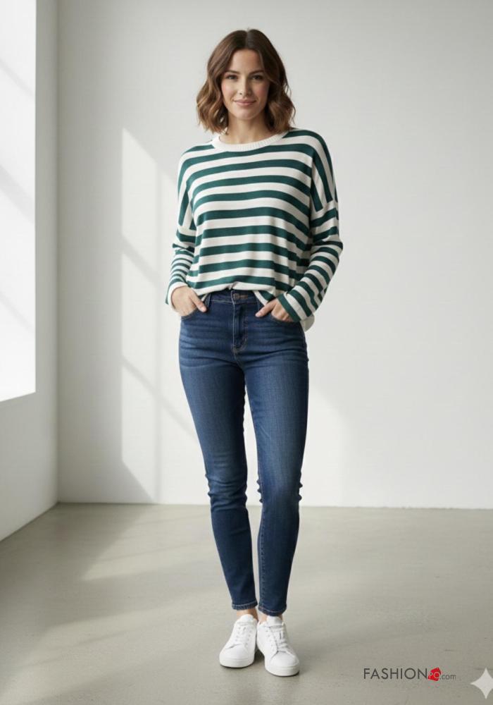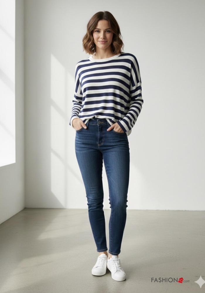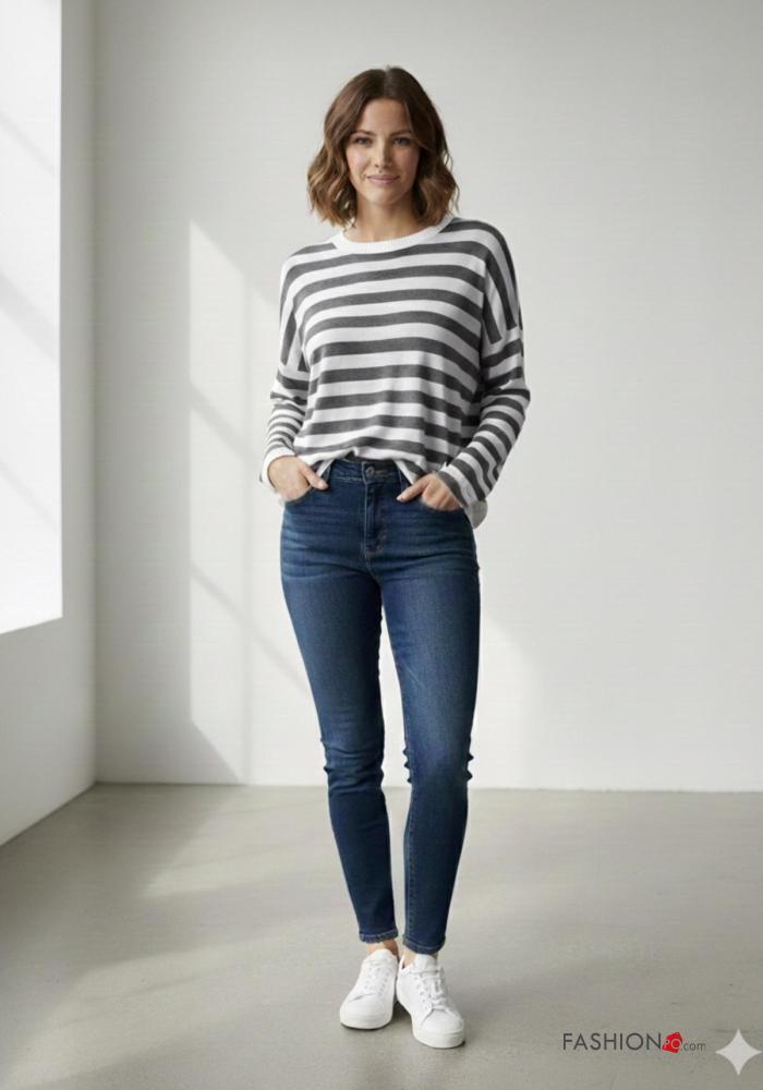 Home > Abbigliamento > T-shirts e Top > Maglietta a manica lunga girocollo Fantasia righe