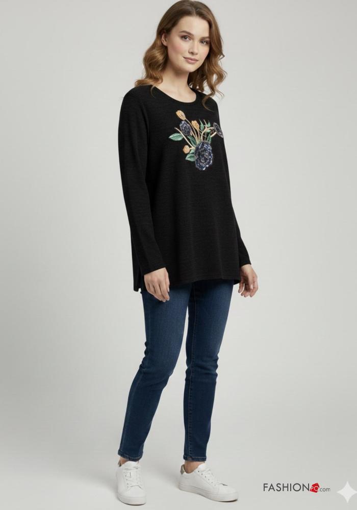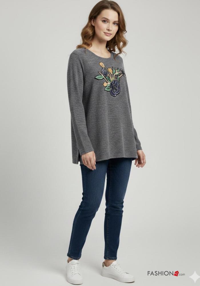 Maglietta a manica lunga in Misto Lana girocollo Fantasia stampata