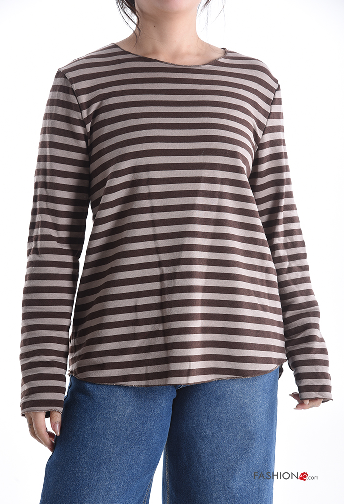 Home > Abbigliamento > T-shirts e Top > Maglietta a manica lunga in Cotone girocollo Fantasia righe