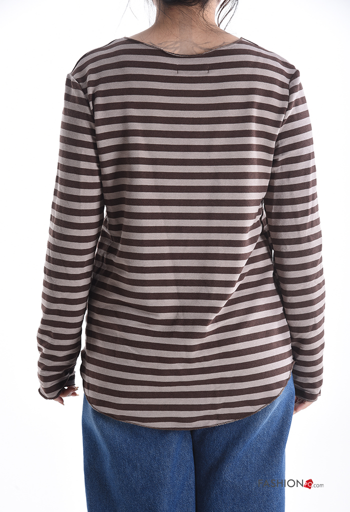 Maglietta a manica lunga in Cotone girocollo Fantasia righe