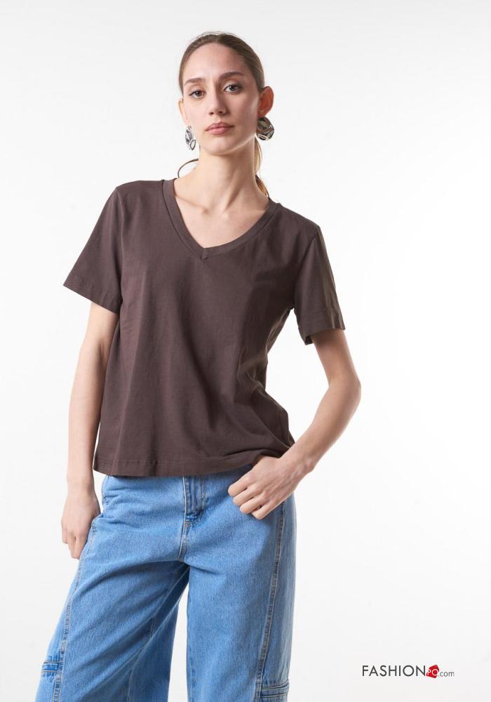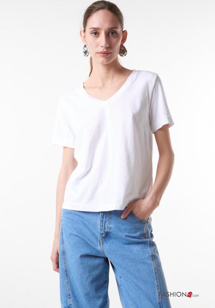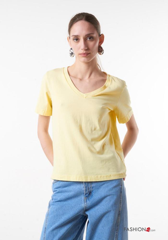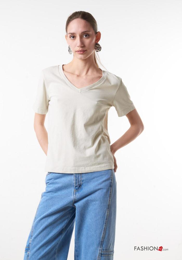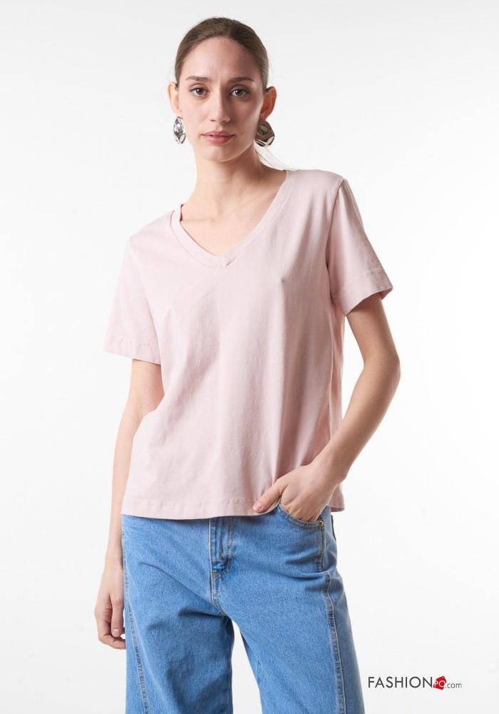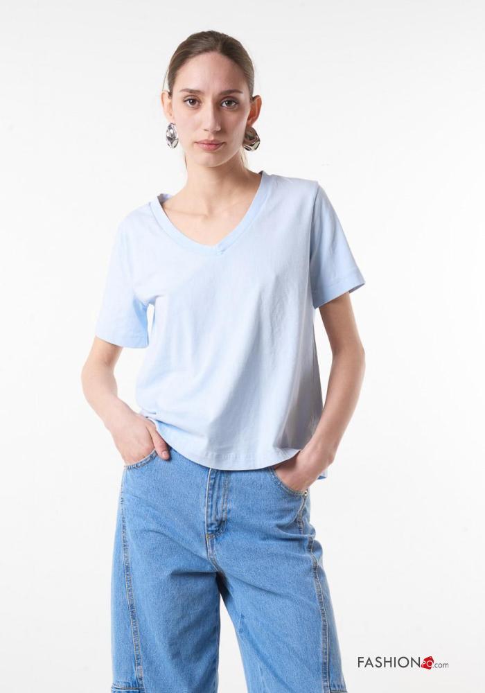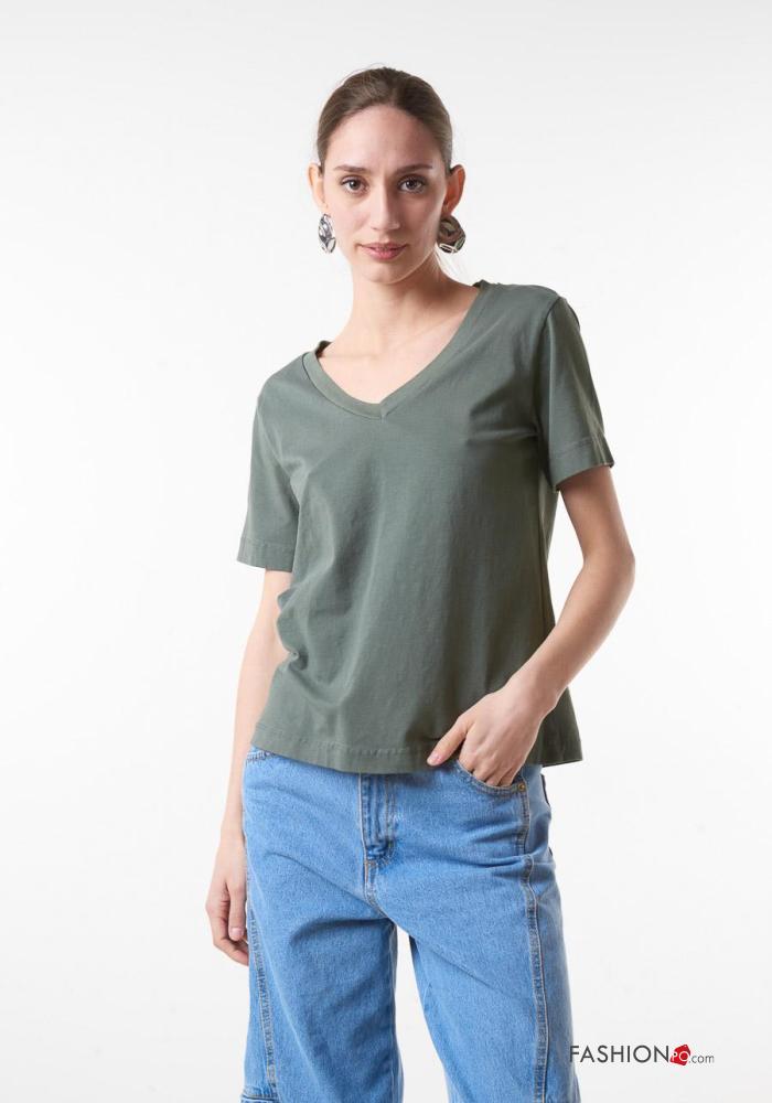 T-shirt in Cotone scollo a V