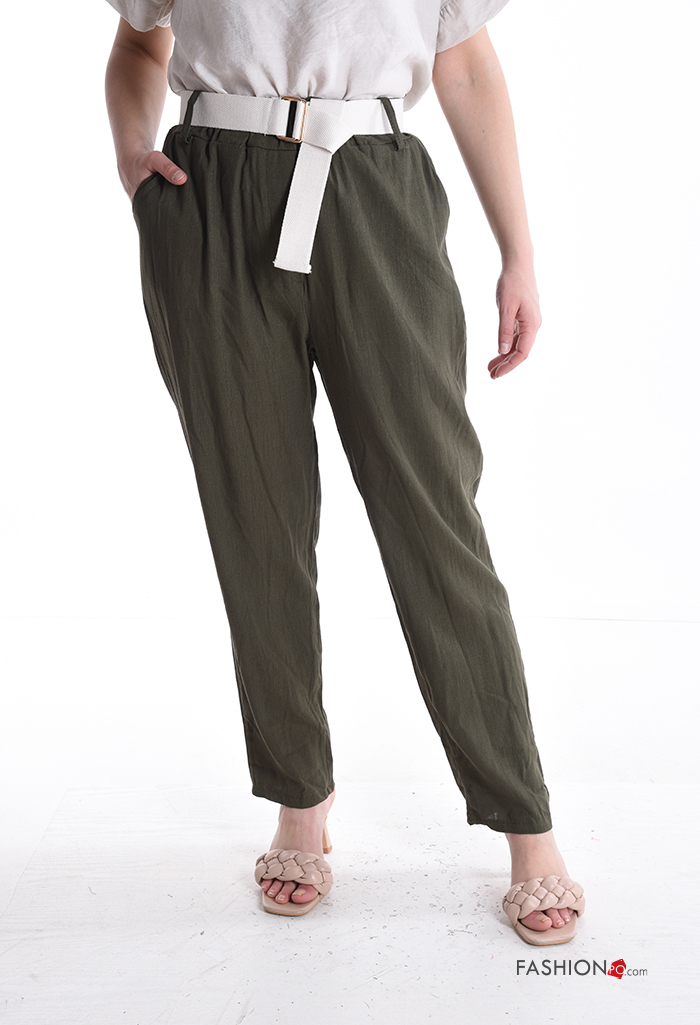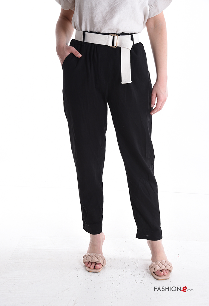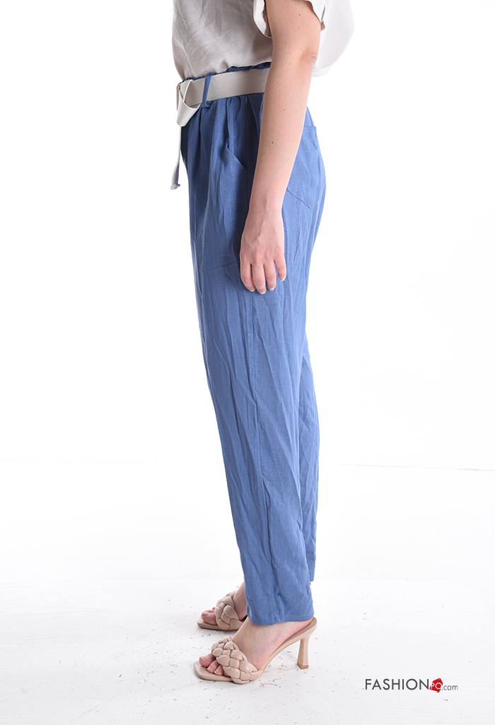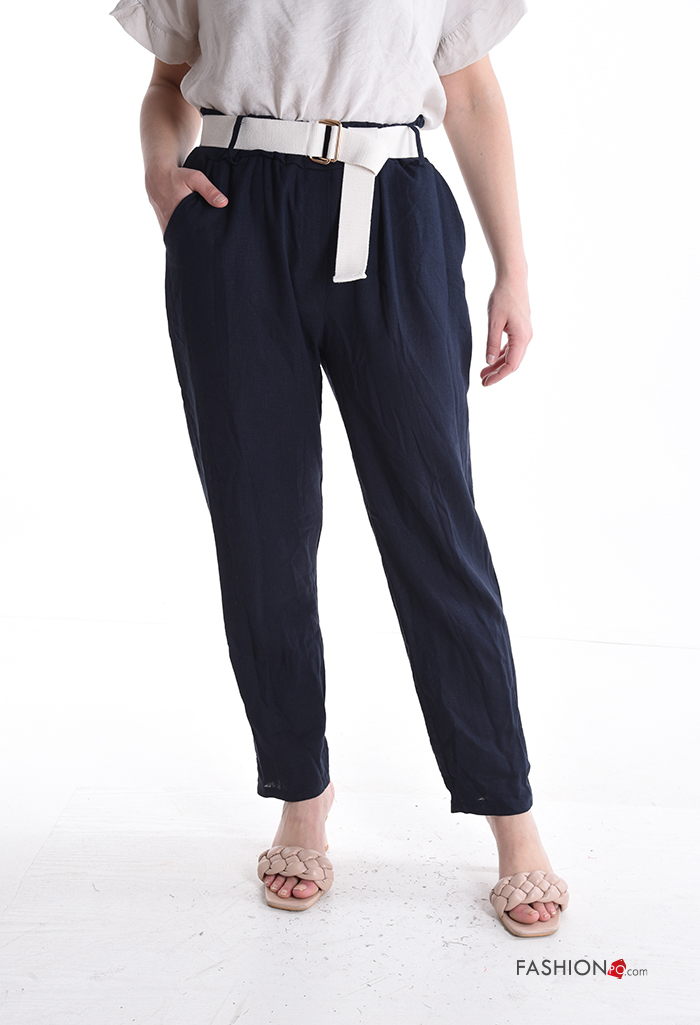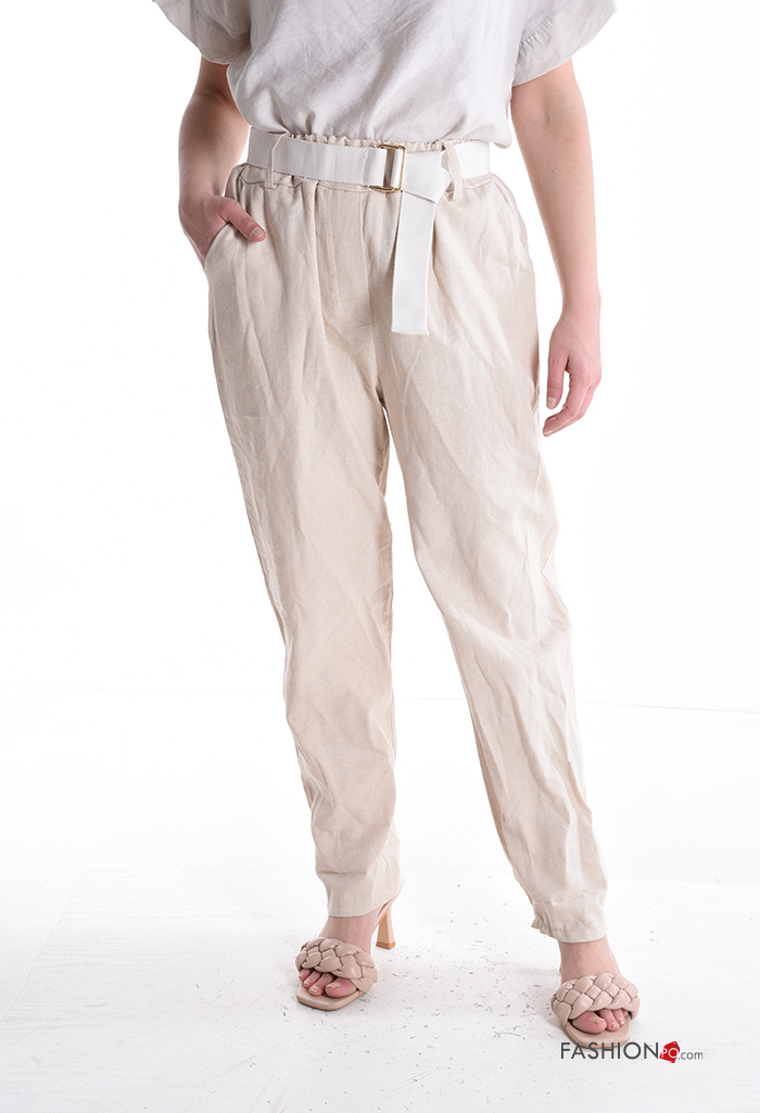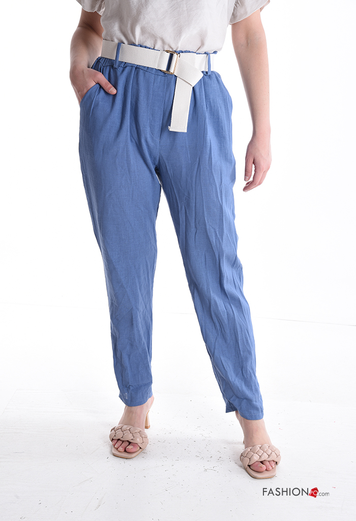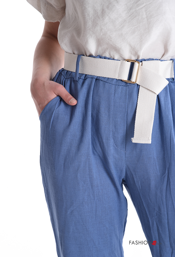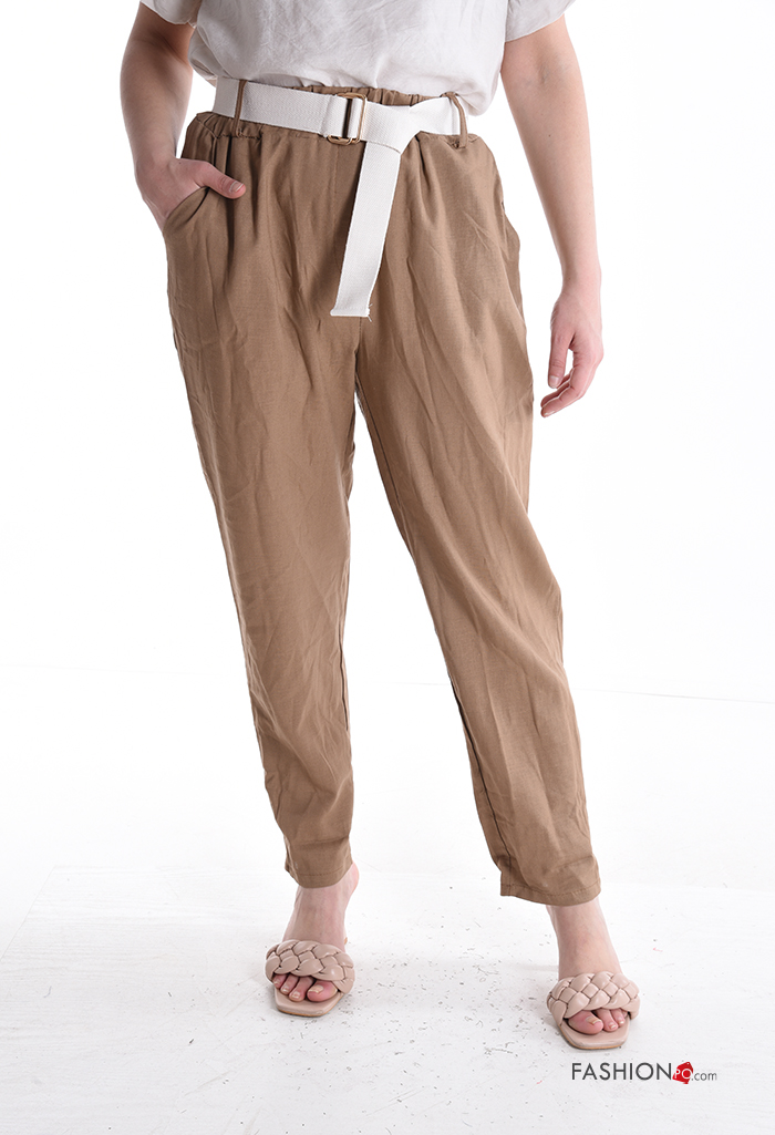 Home > Brands > LEDA MODA > Calças em Linho com cinto com bolsos com elástico
