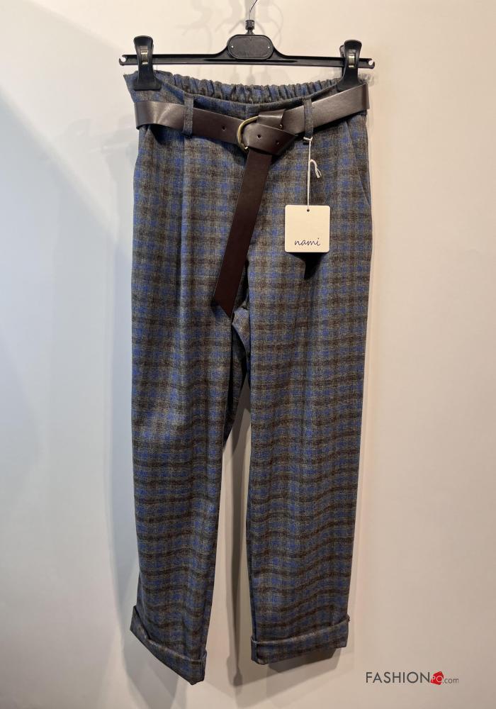 Home > Brands > NAMI > Calças Padrão Tartan com bolsos com botões com cinto com fecho