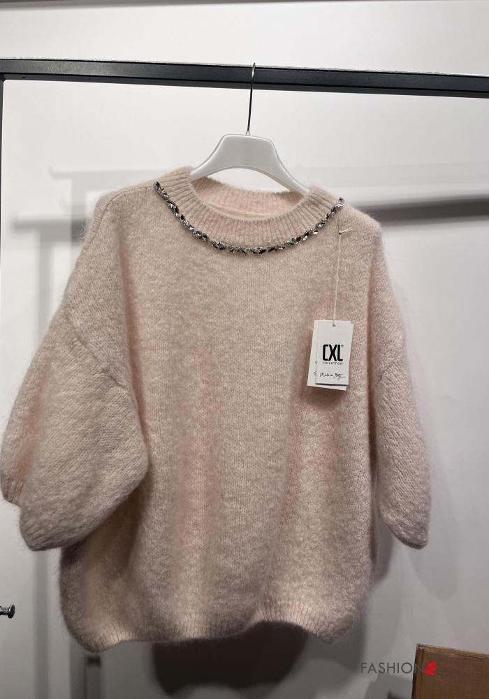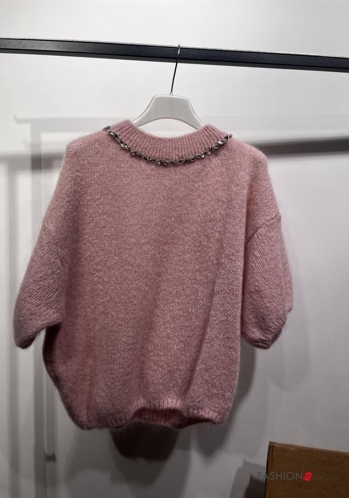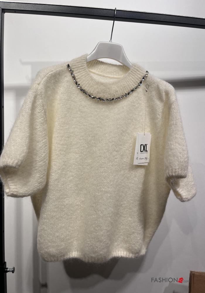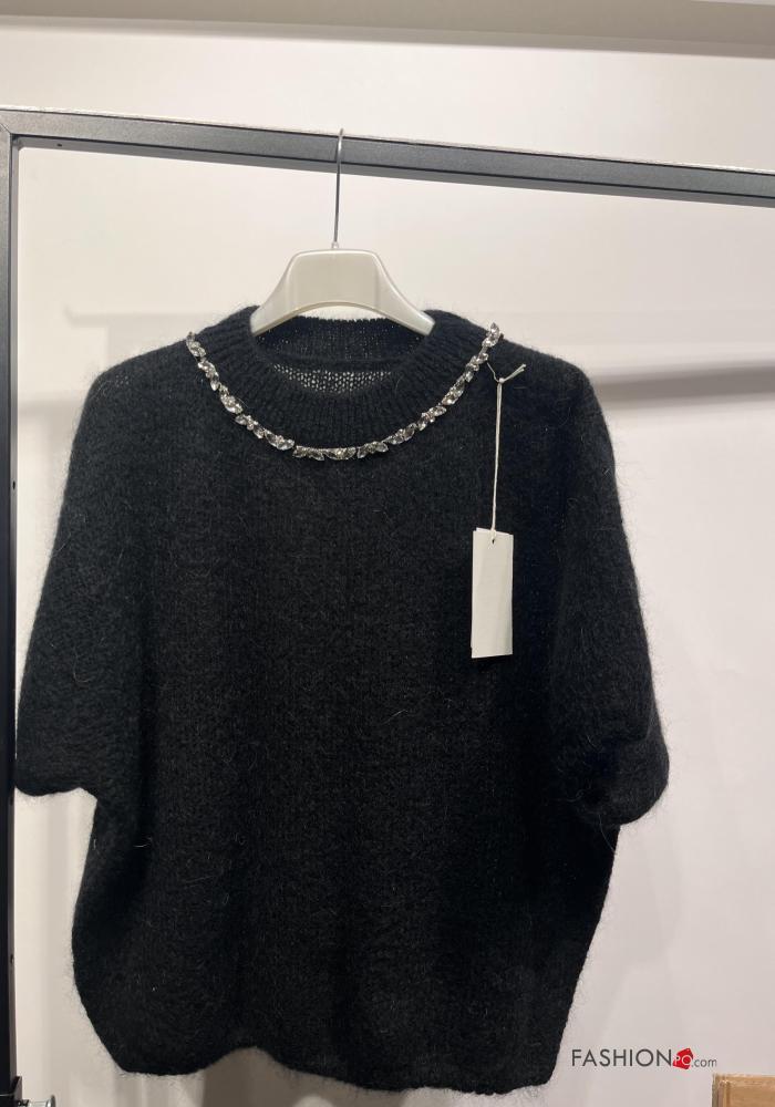 Camisola em Mohair manga curta gola redonda com strass