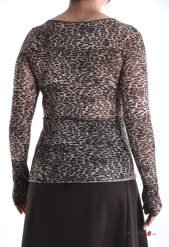 Camisola de mangas compridas em Cashmere Blend gola redonda Padrão animal