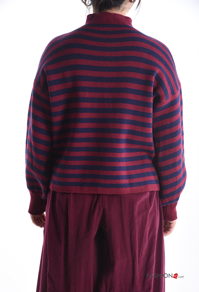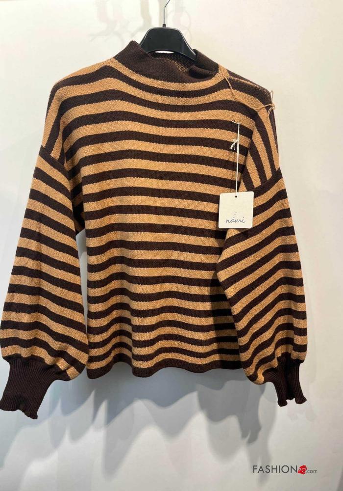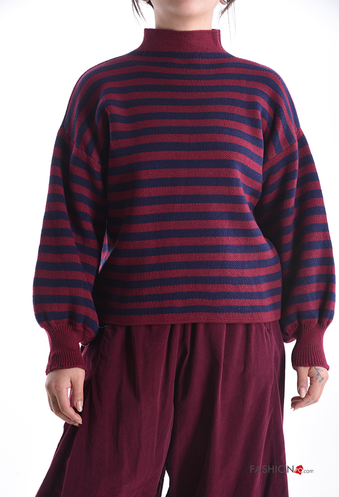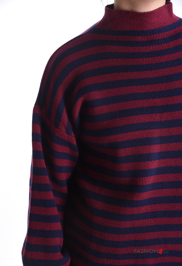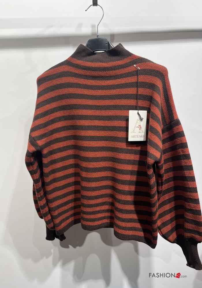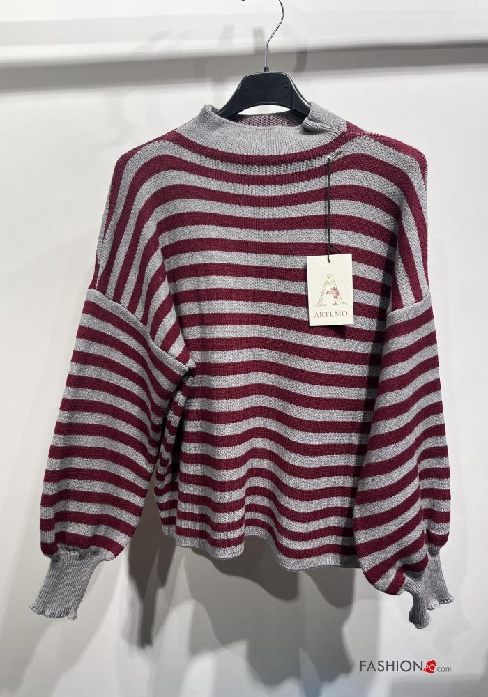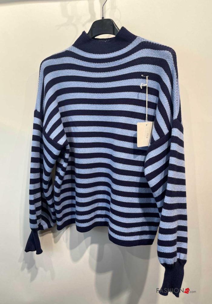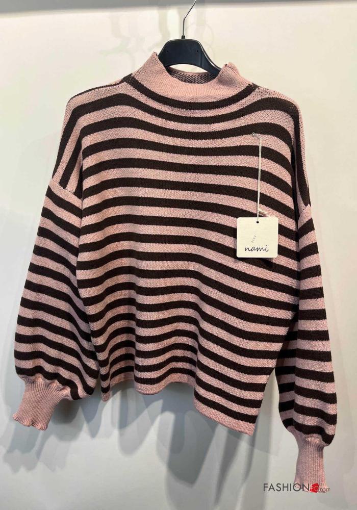 Camisola manga comprida às riscas com gola subida