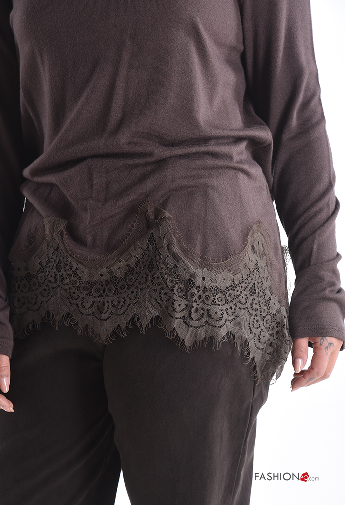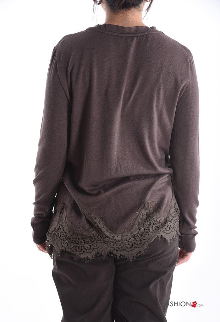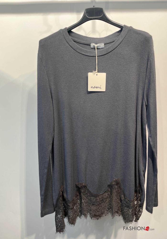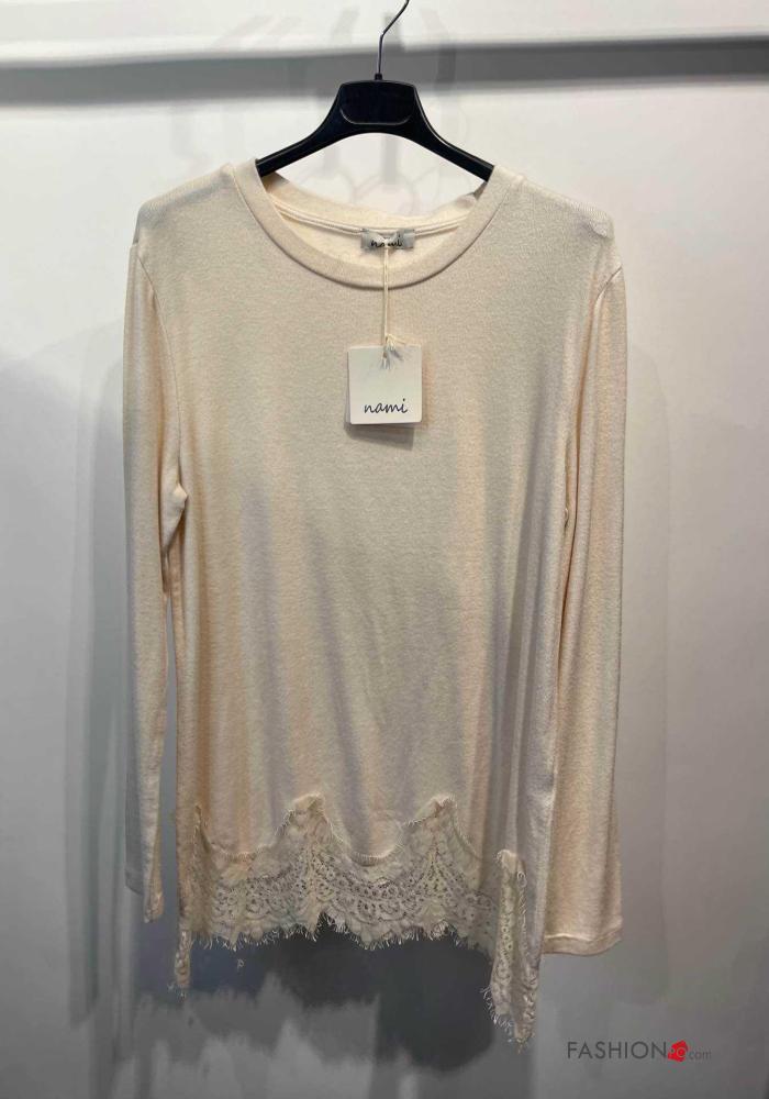 Home > Brands > NAMI > Camisola de mangas compridas renda gola redonda