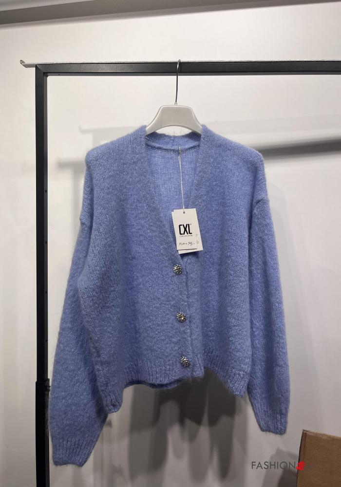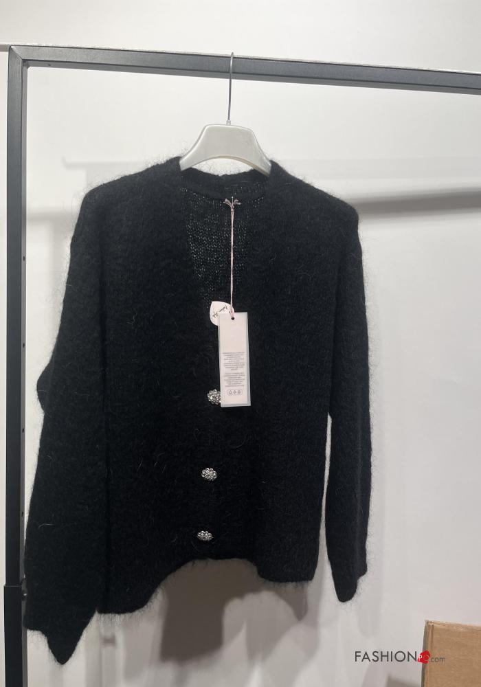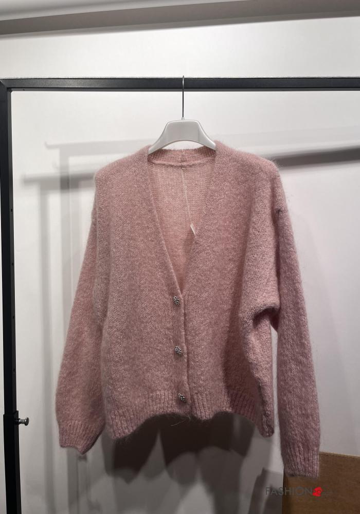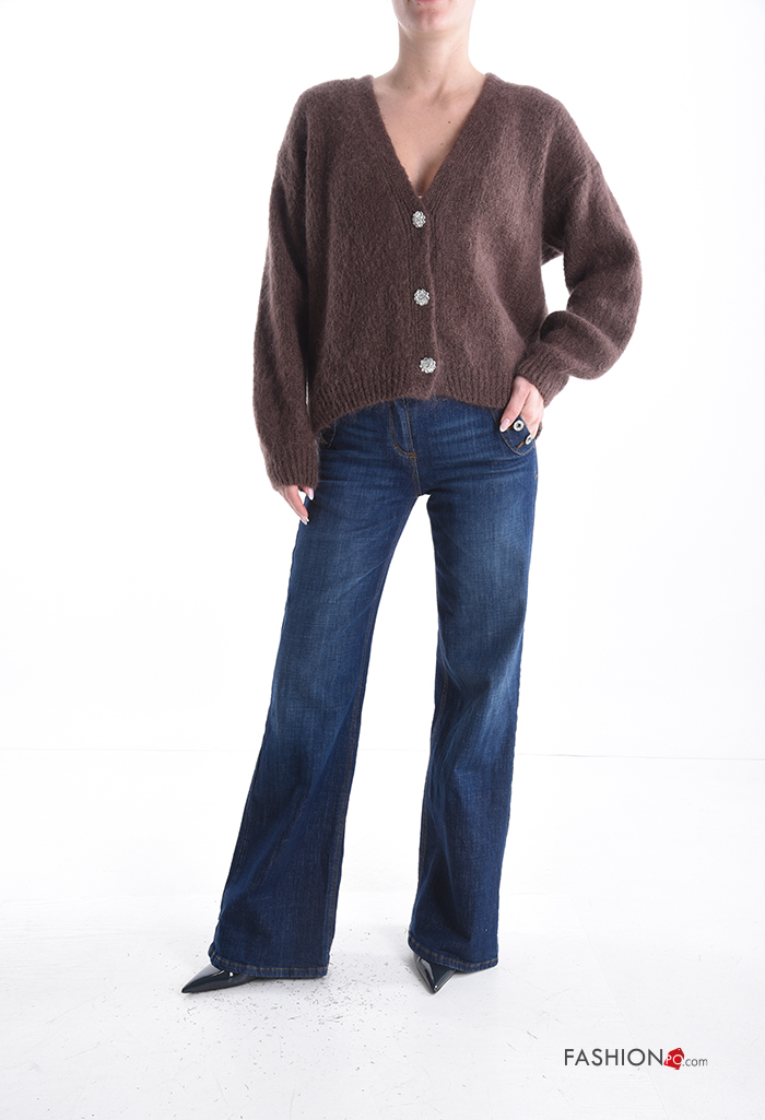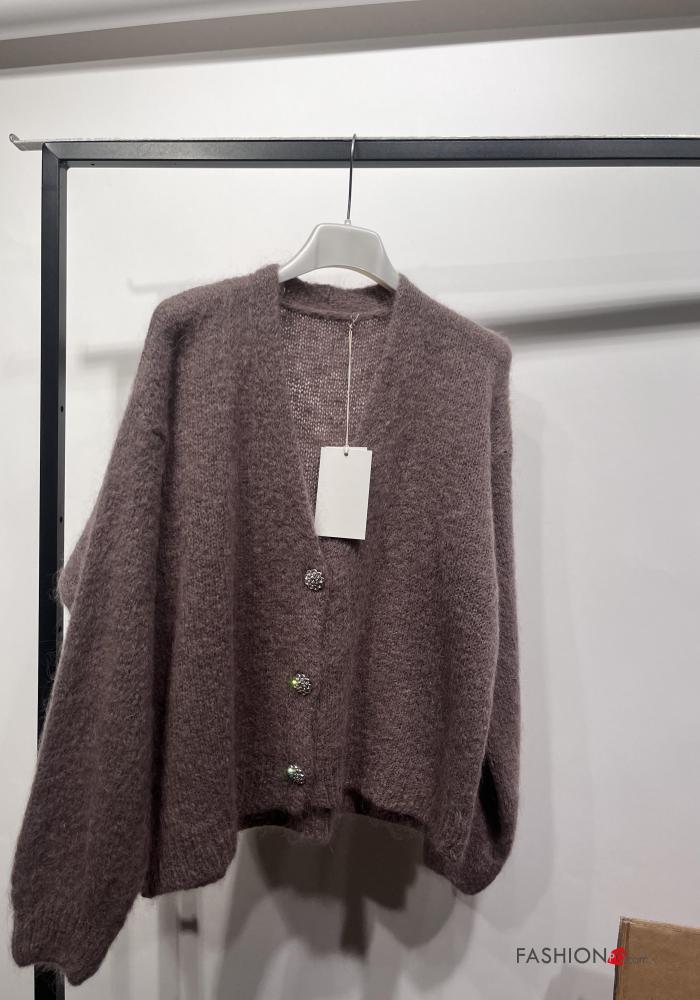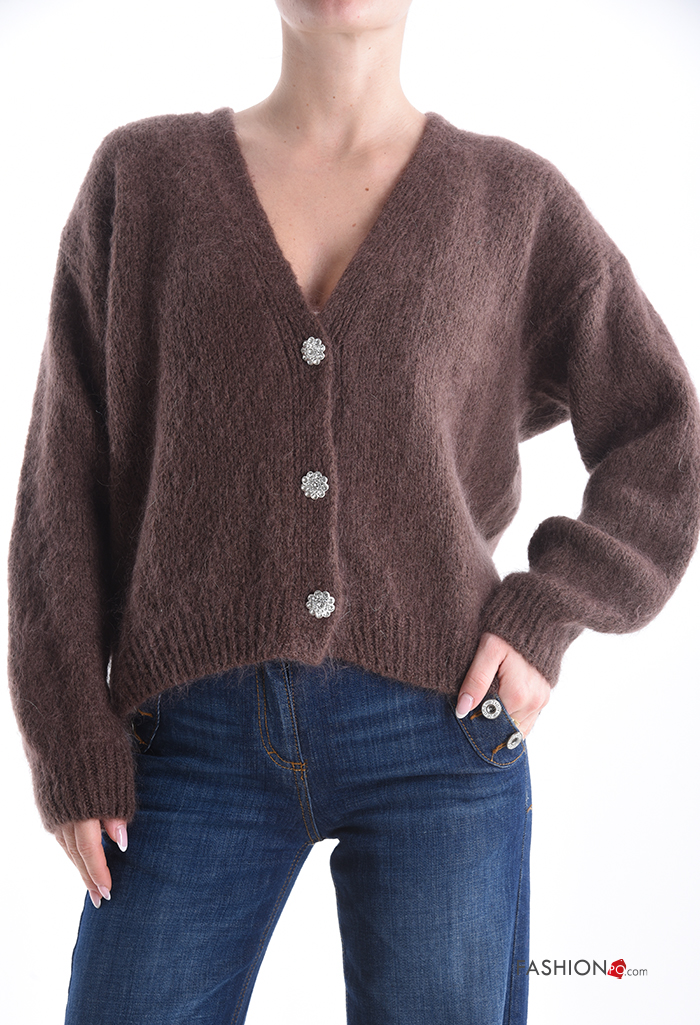 Cardigã em Mohair manga comprida gola V com botões com strass