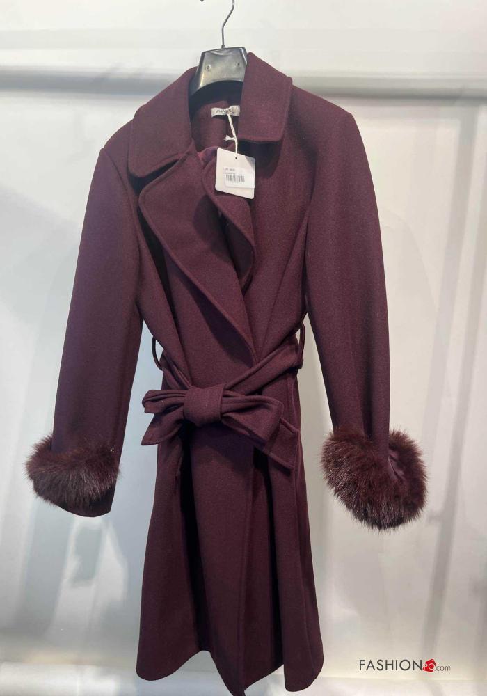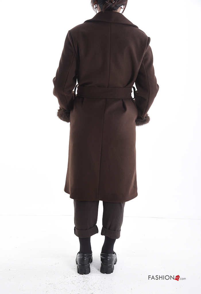 Casaco pelo sintético manga comprida com cinto com forro