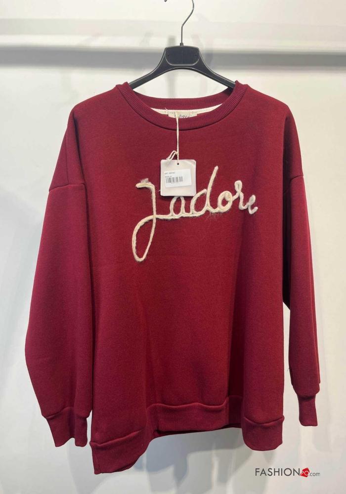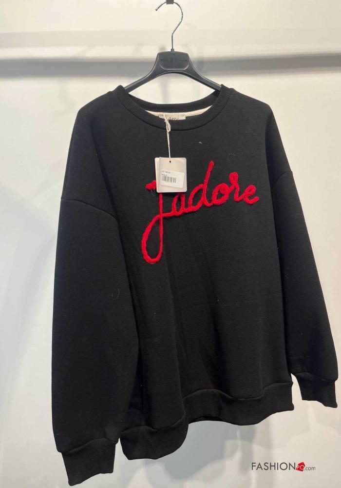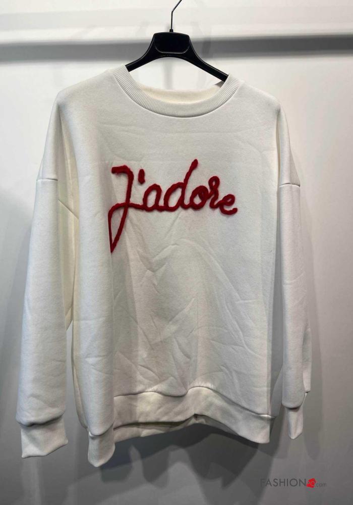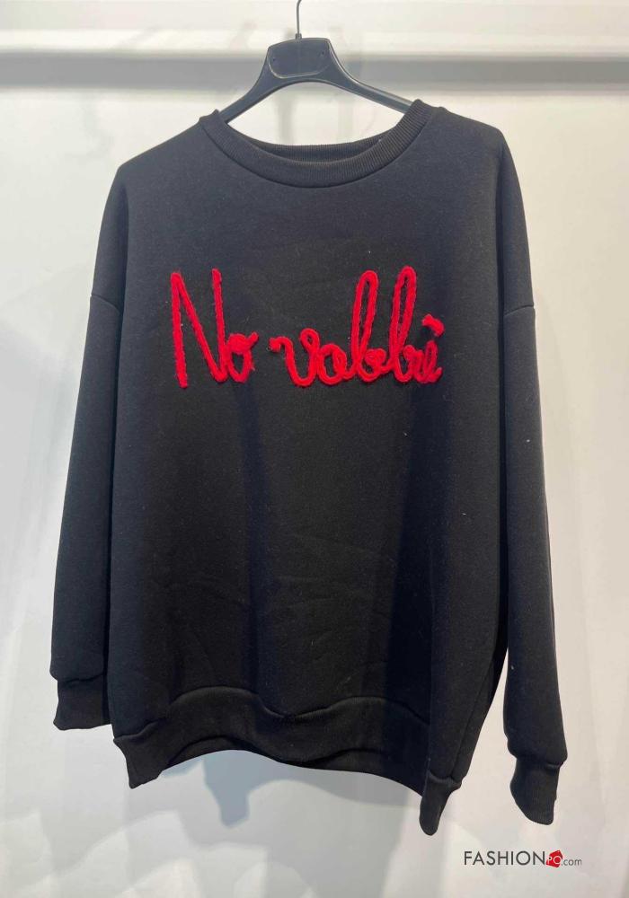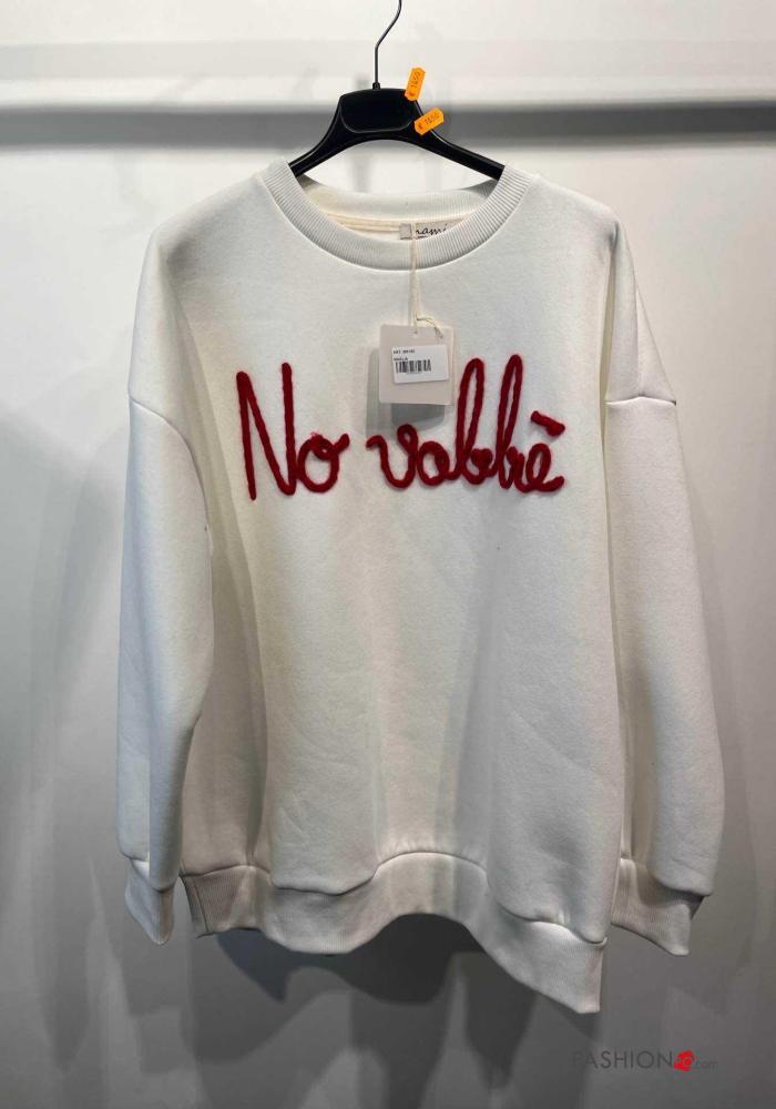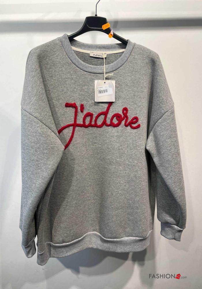 Sweatshirt em Algodão manga comprida gola redonda Padrão escrito