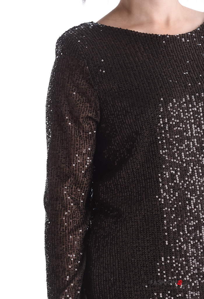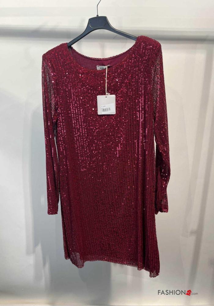 Vestido manga comprida gola redonda com lantejoulas