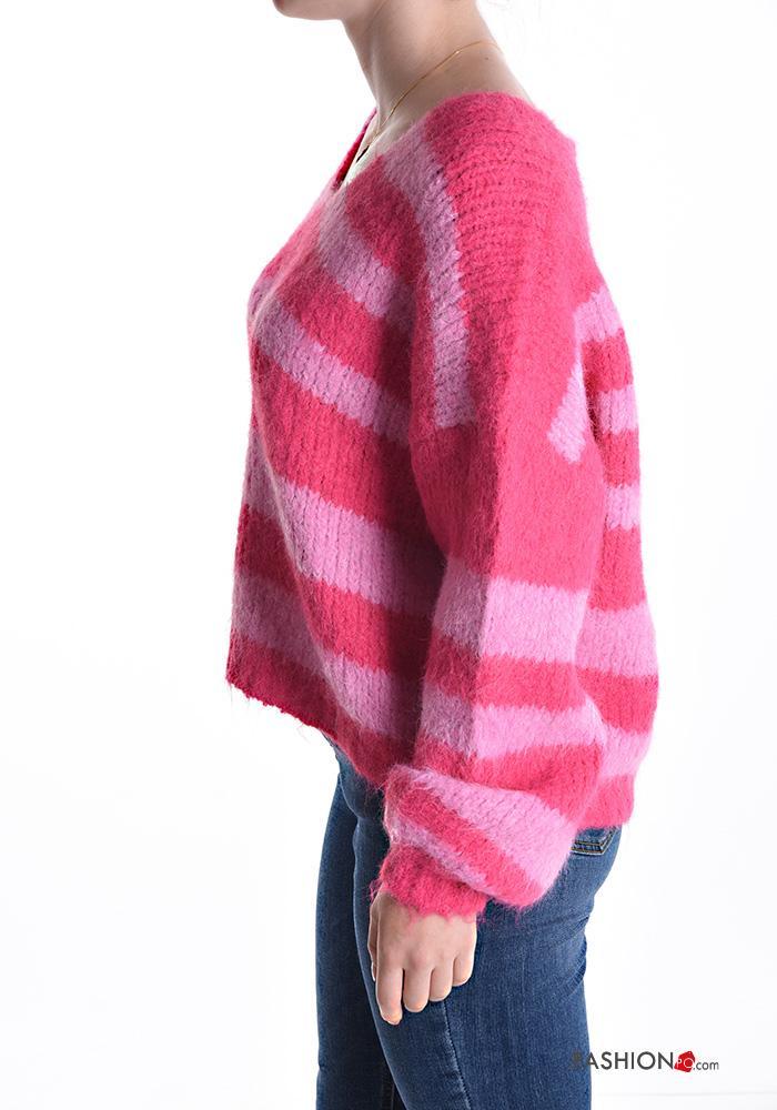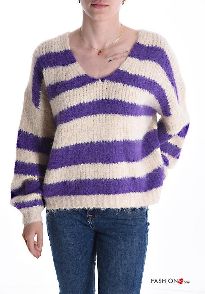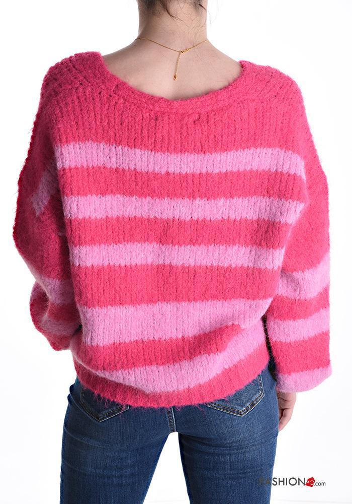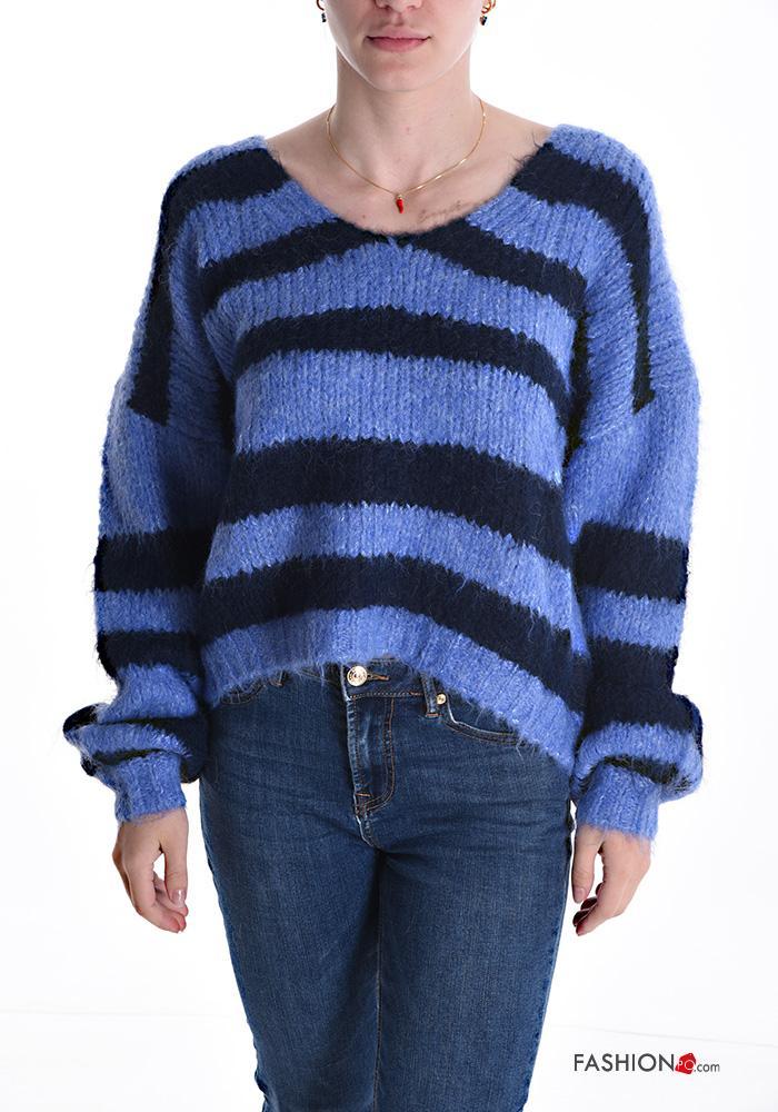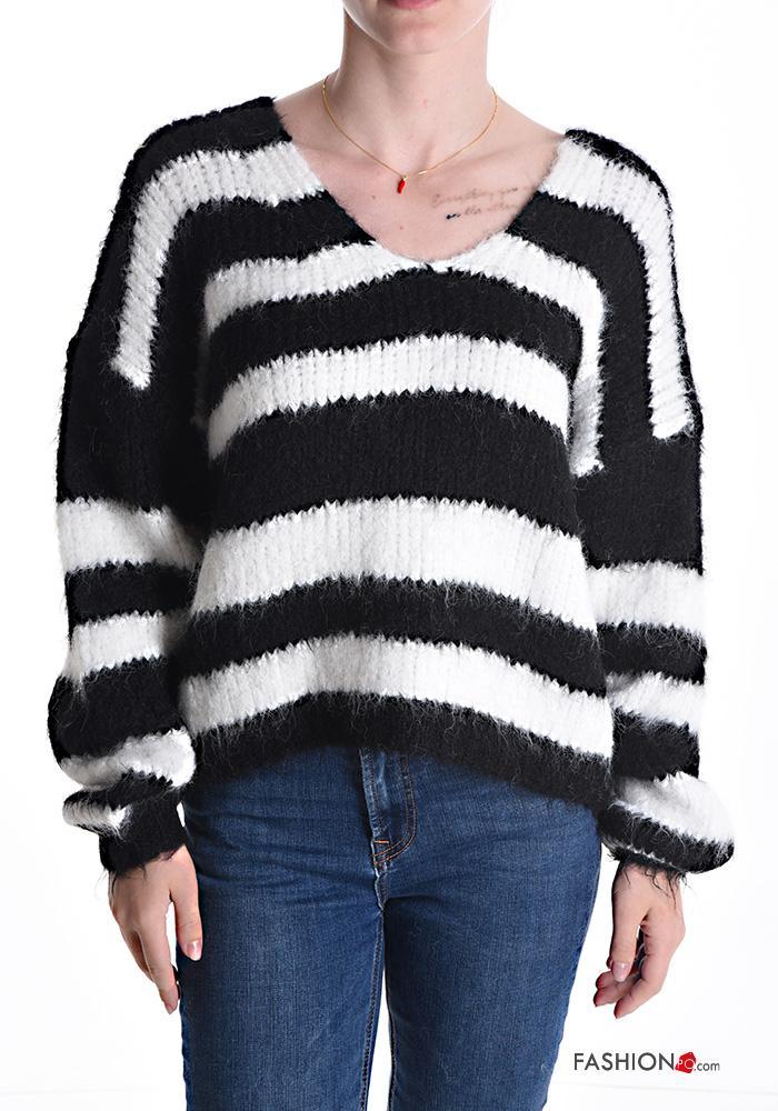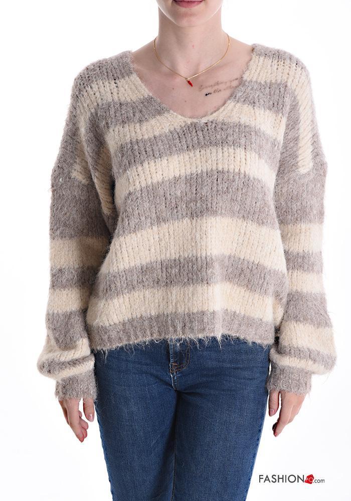 Home > Brands > ZHIMIAO MODA > Camisola em Lã mista manga comprida às riscas gola V