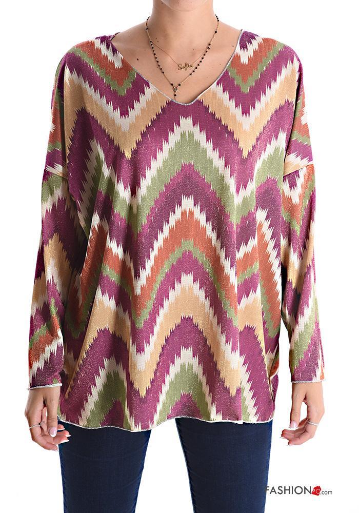 Home > Brands > ZHIMIAO MODA > Camisola de mangas compridas lurex Padrão optical gola V
