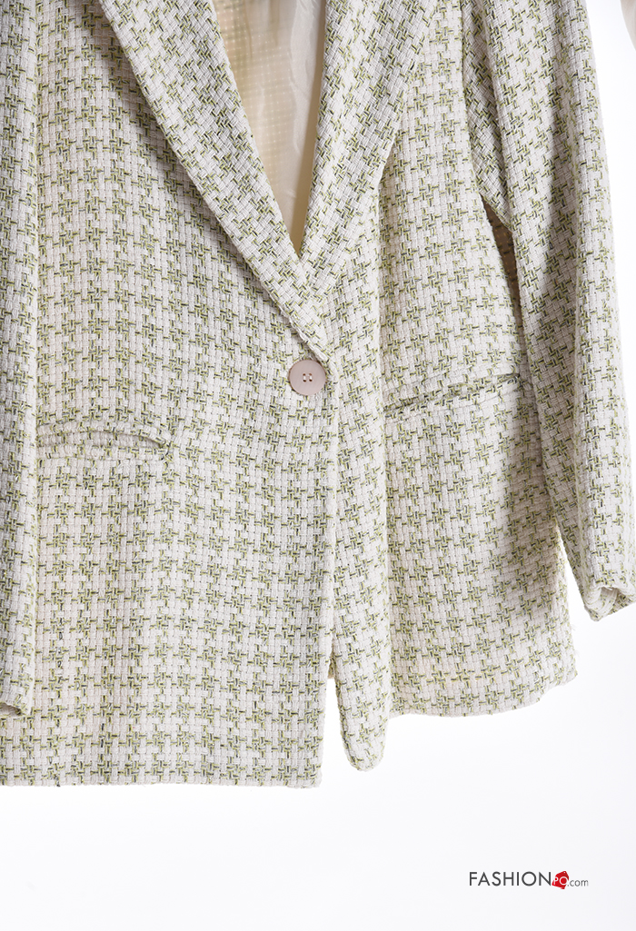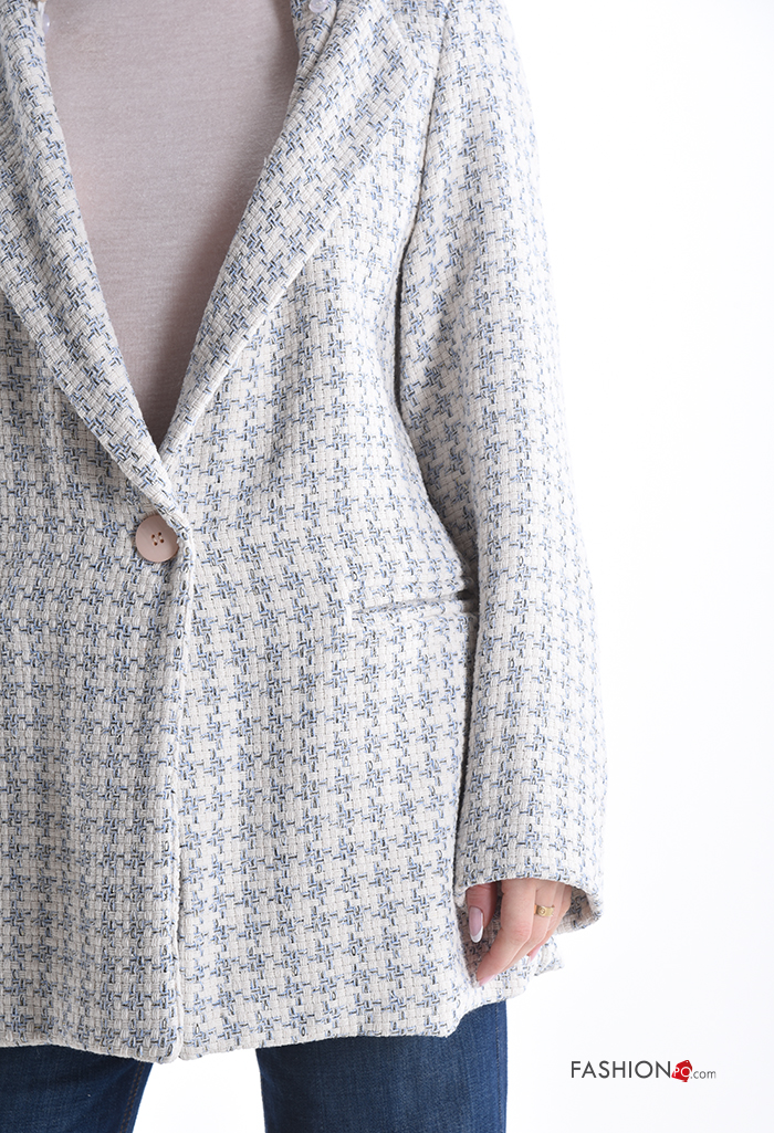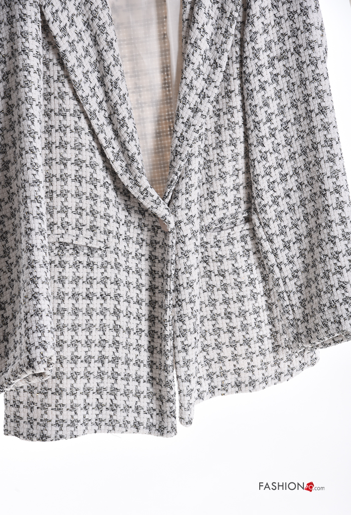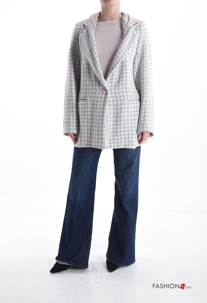Casaco em Algodão manga comprida Pied de Poule com forro com capuz com bolsos com botões